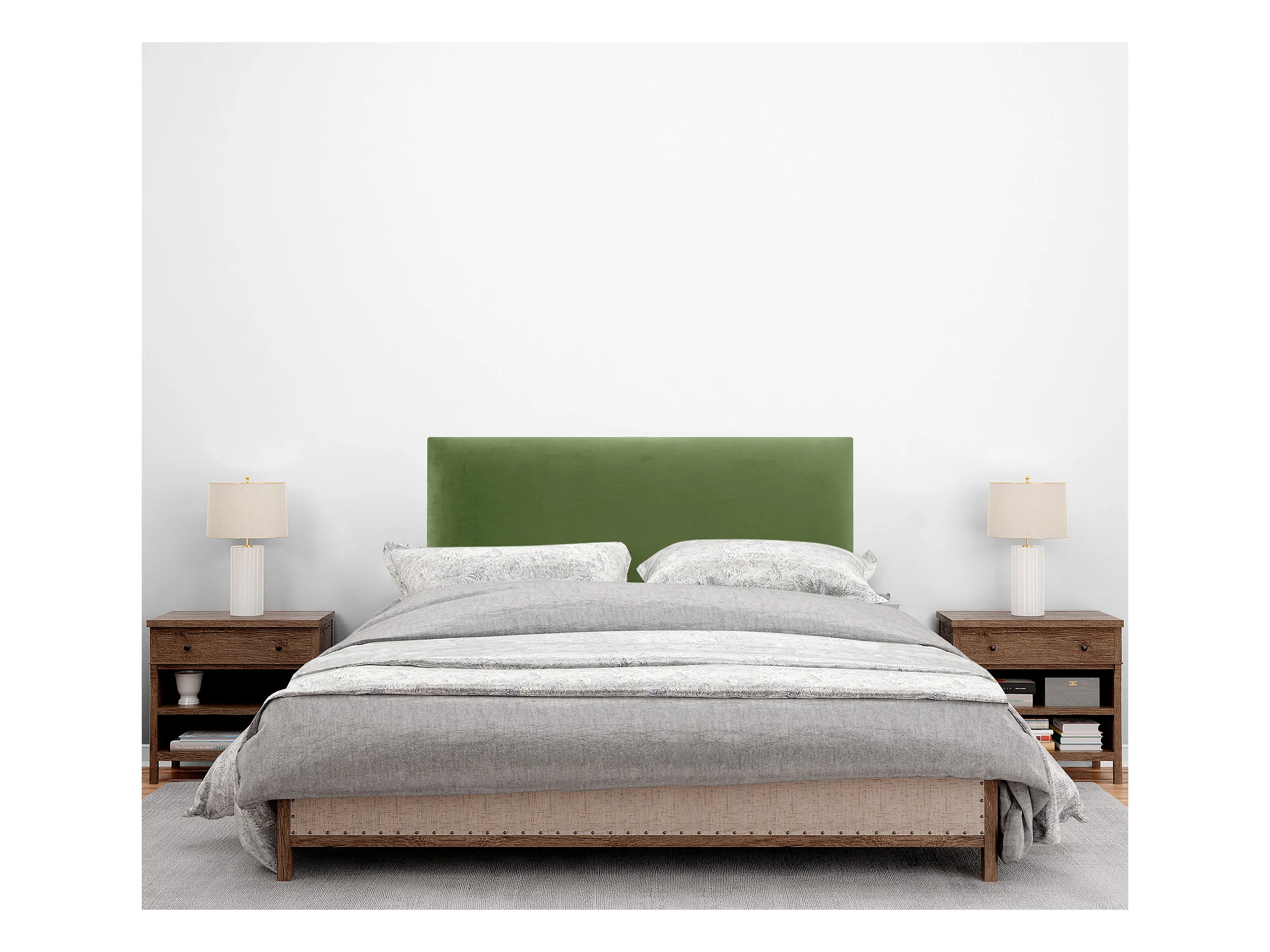 DHOME Kopfteil aus glattem Samt 95 x 115 mit Bettbeinen 80/90 – Dschungelgrün