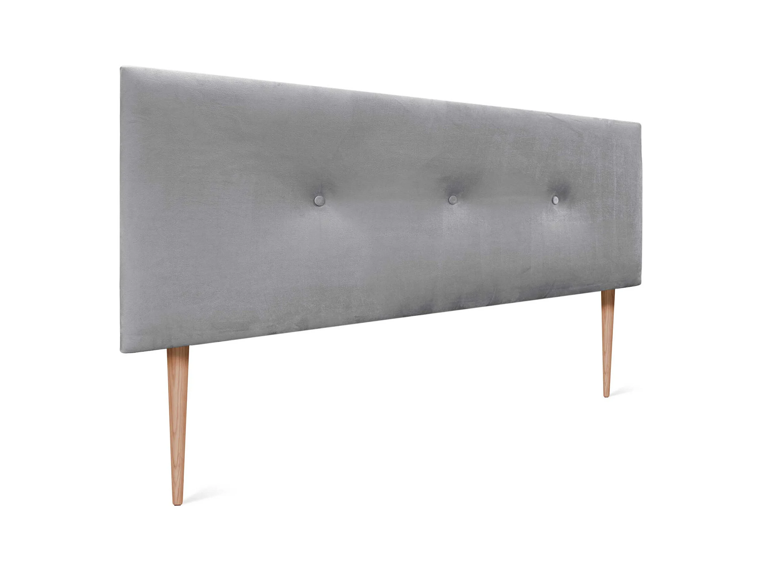 DHOME Kopfteil aus glattem Samt mit Knöpfen 135 x 105 mit Bettbeinen 120/135/140 – Hellgrau