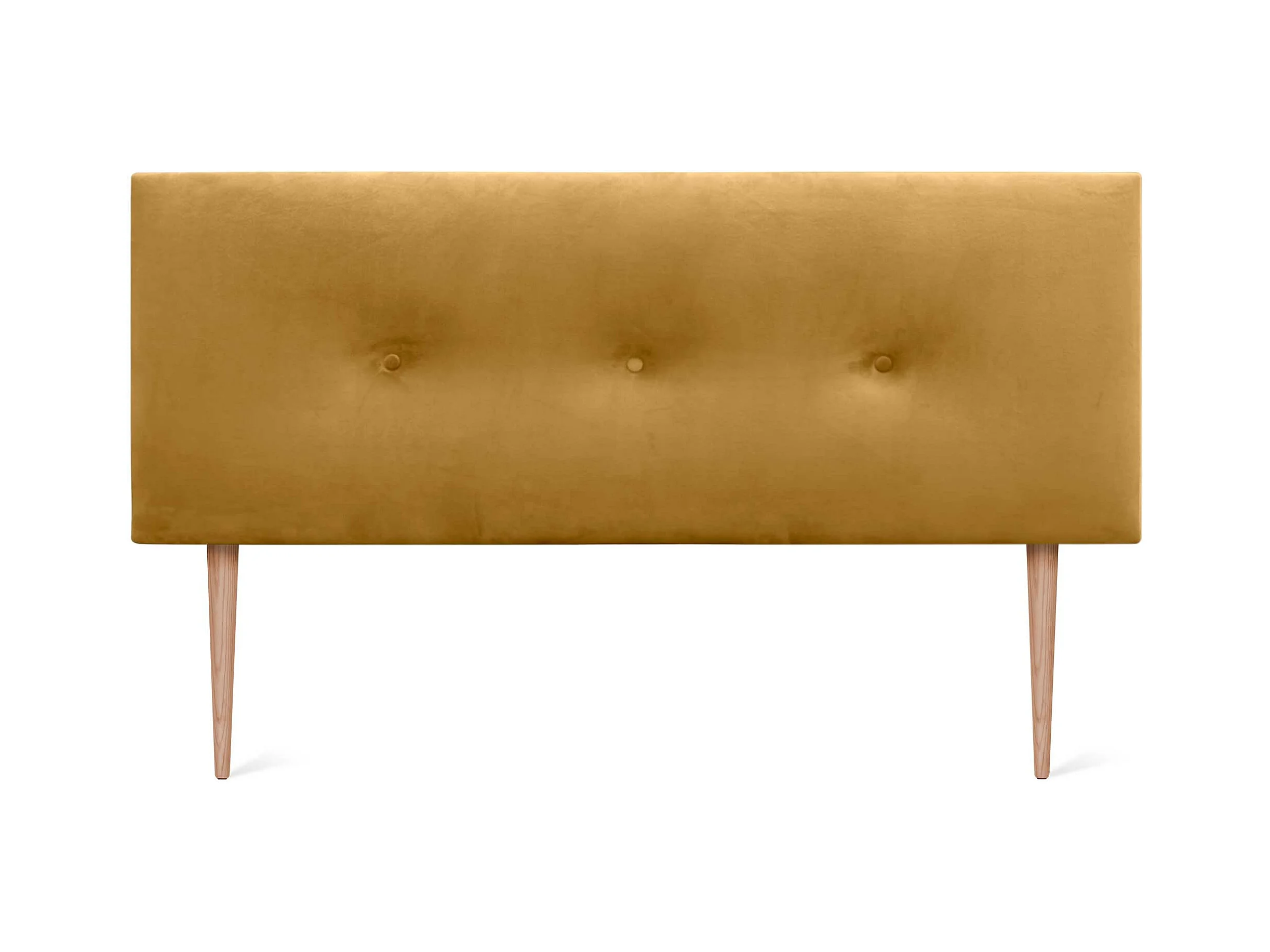 DHOME Kopfteil aus glattem Samt mit Knöpfen 135 x 105 mit Bettbeinen 120/135/140 – Senf