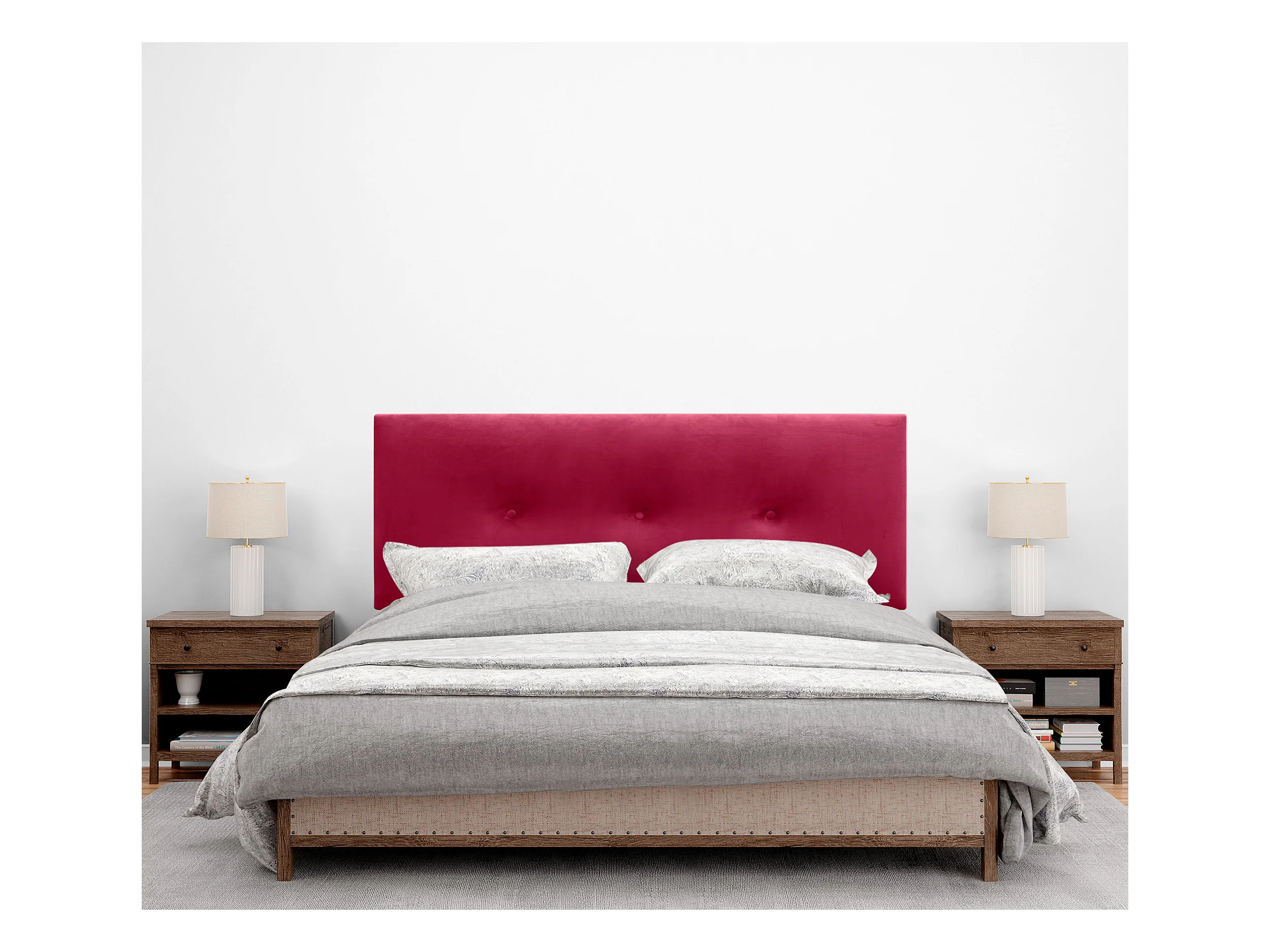 DHOME Kopfteil aus glattem Samt mit Knöpfen 135 x 115 mit Bettbeinen 120/135/140 – Rot