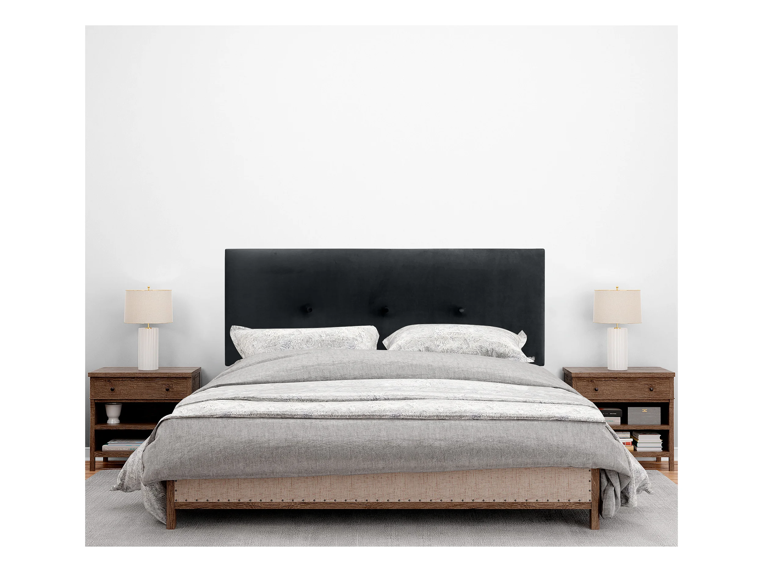 DHOME Kopfteil aus glattem Samt mit Knöpfen 150 x 105 mit Bettbeinen 150/160 – Schwarz