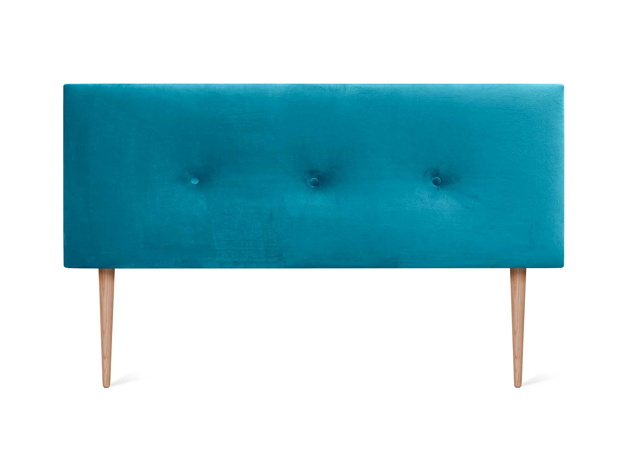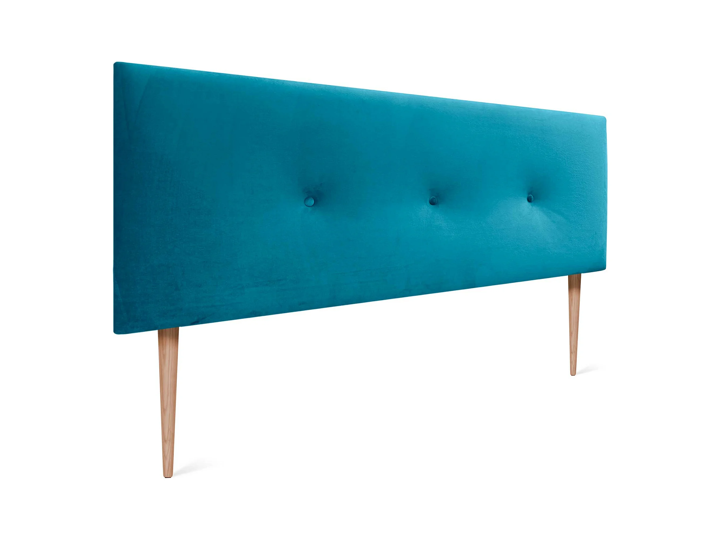 DHOME Kopfteil aus glattem Samt mit Knöpfen 160 x 105 mit Bettbeinen 150/160 – Hellblau