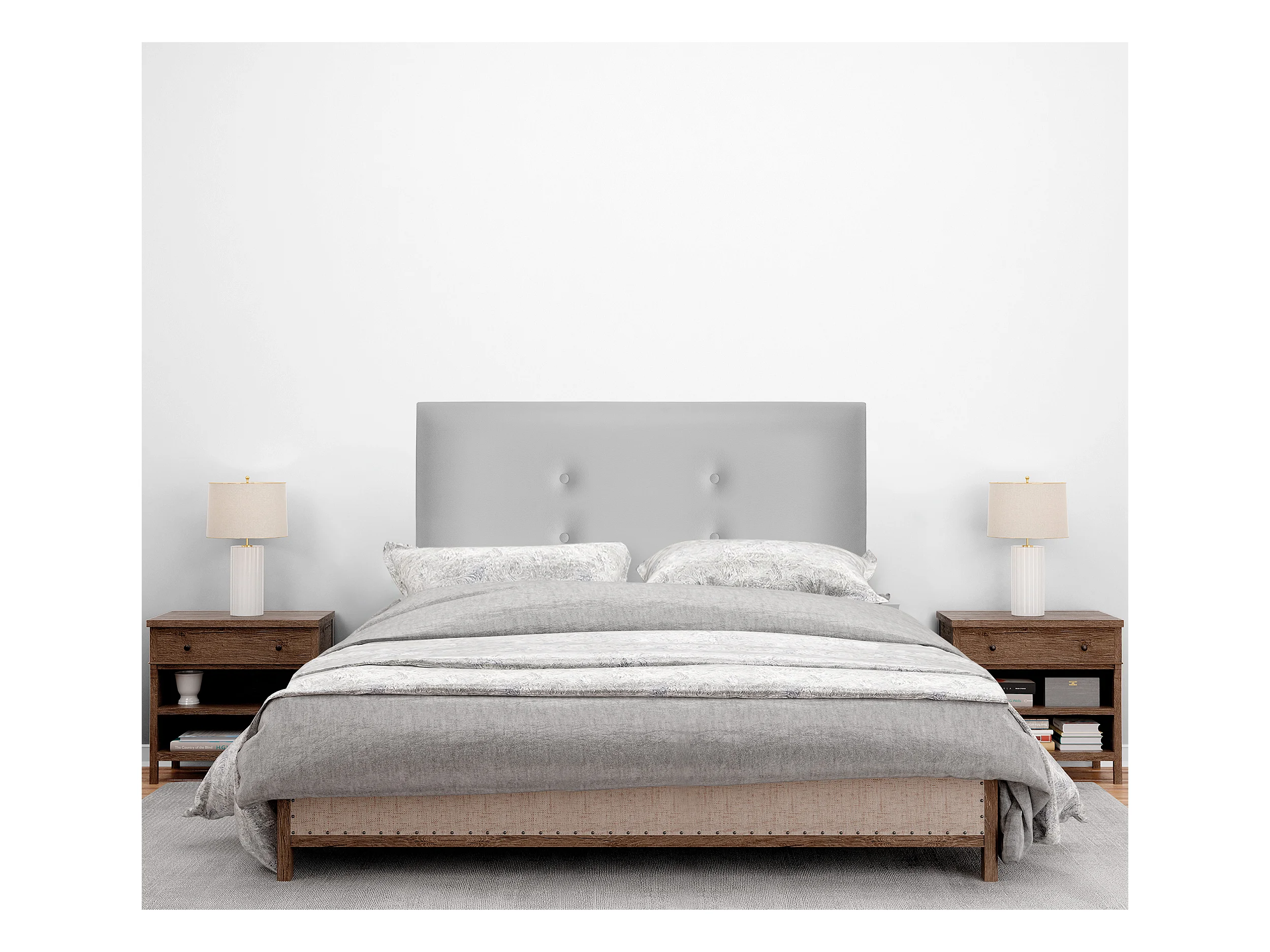 DHOME Kopfteil aus Kunstleder mit 2 Reihen Knöpfen 105x105cm Mit Beinen Betten 105 - Hellgrau