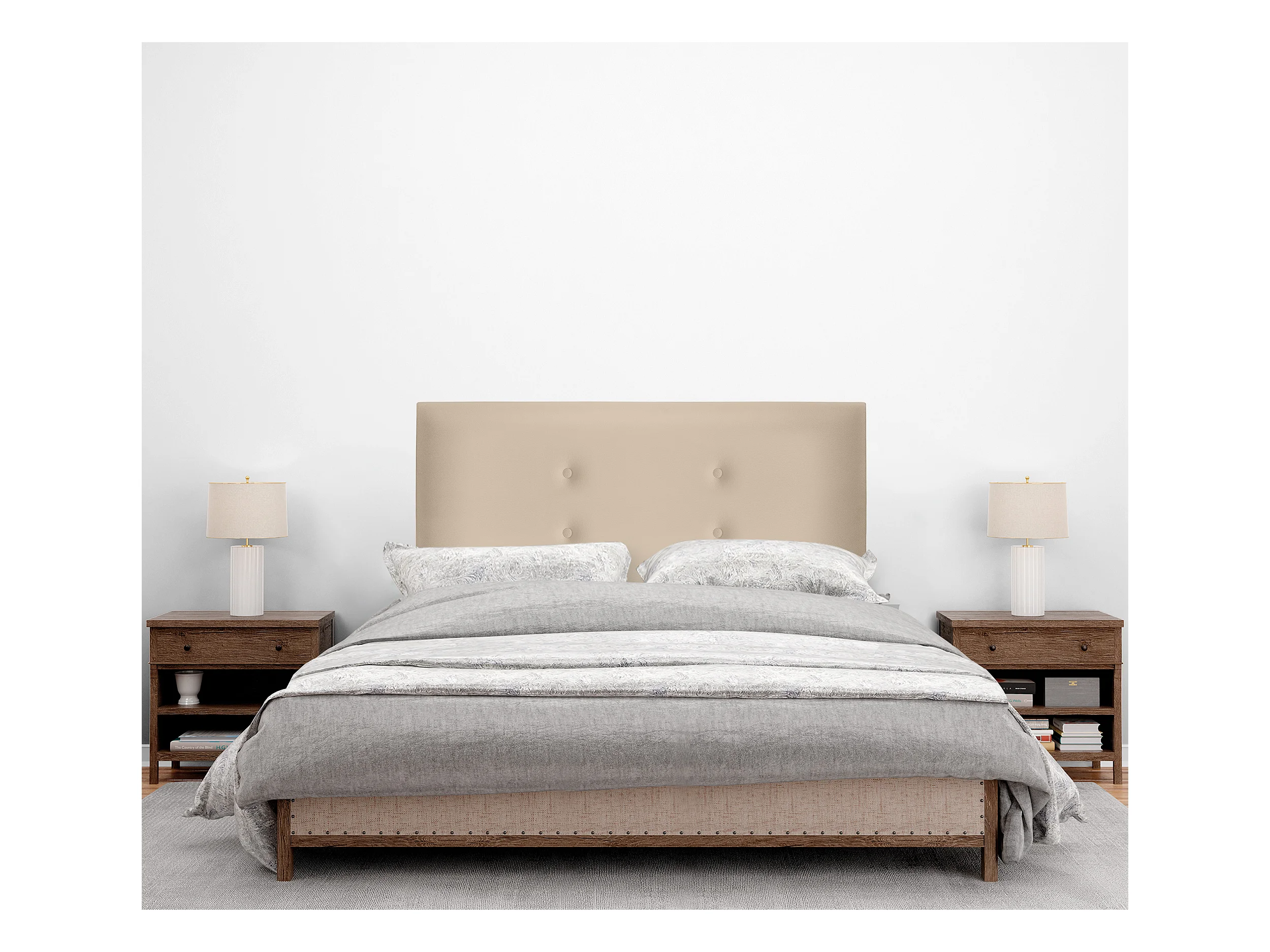 DHOME Kopfteil aus Kunstleder mit 2 Reihen Knöpfen 110x105cm Mit Beinen Betten 105 - Beige