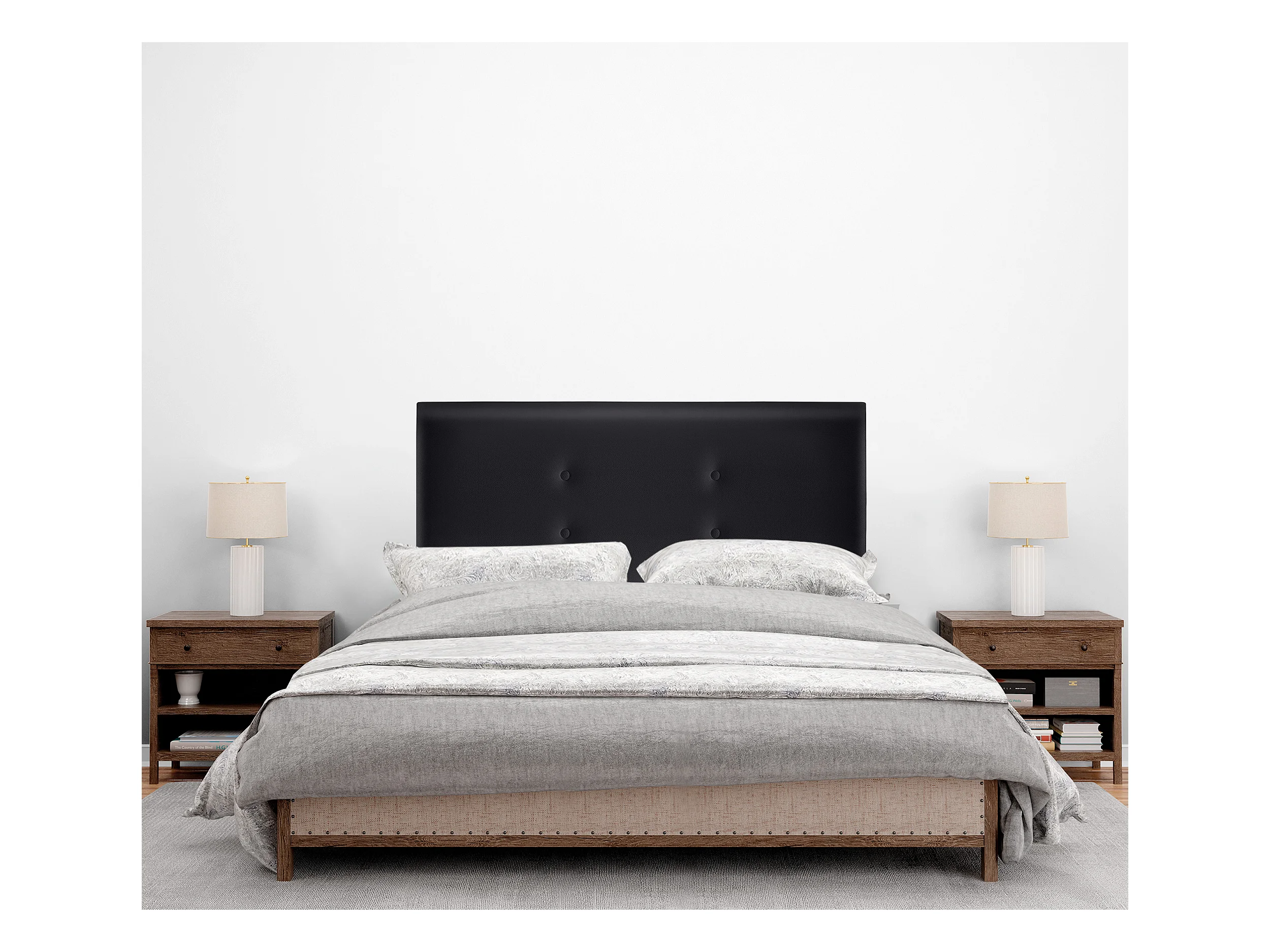 DHOME Kopfteil aus Kunstleder mit 2 Reihen Knöpfen 90x105cm Mit Beinen Betten 80/90 - Schwarz