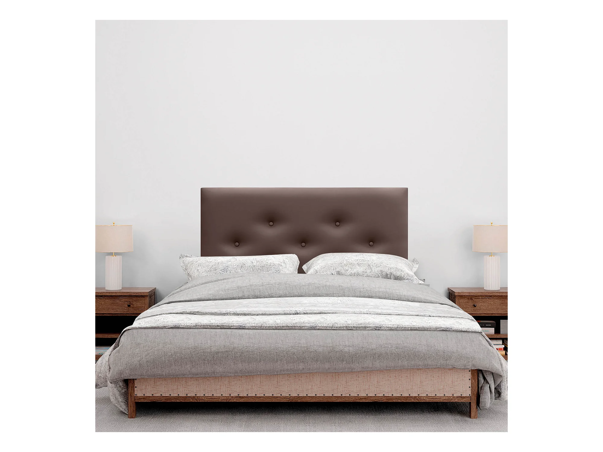 DHOME Kopfteil aus Kunstleder mit 3 versetzten Knopf-Reihen, luxuriös gepolstertes Bettkopfteil (Schokolade, 105cm)