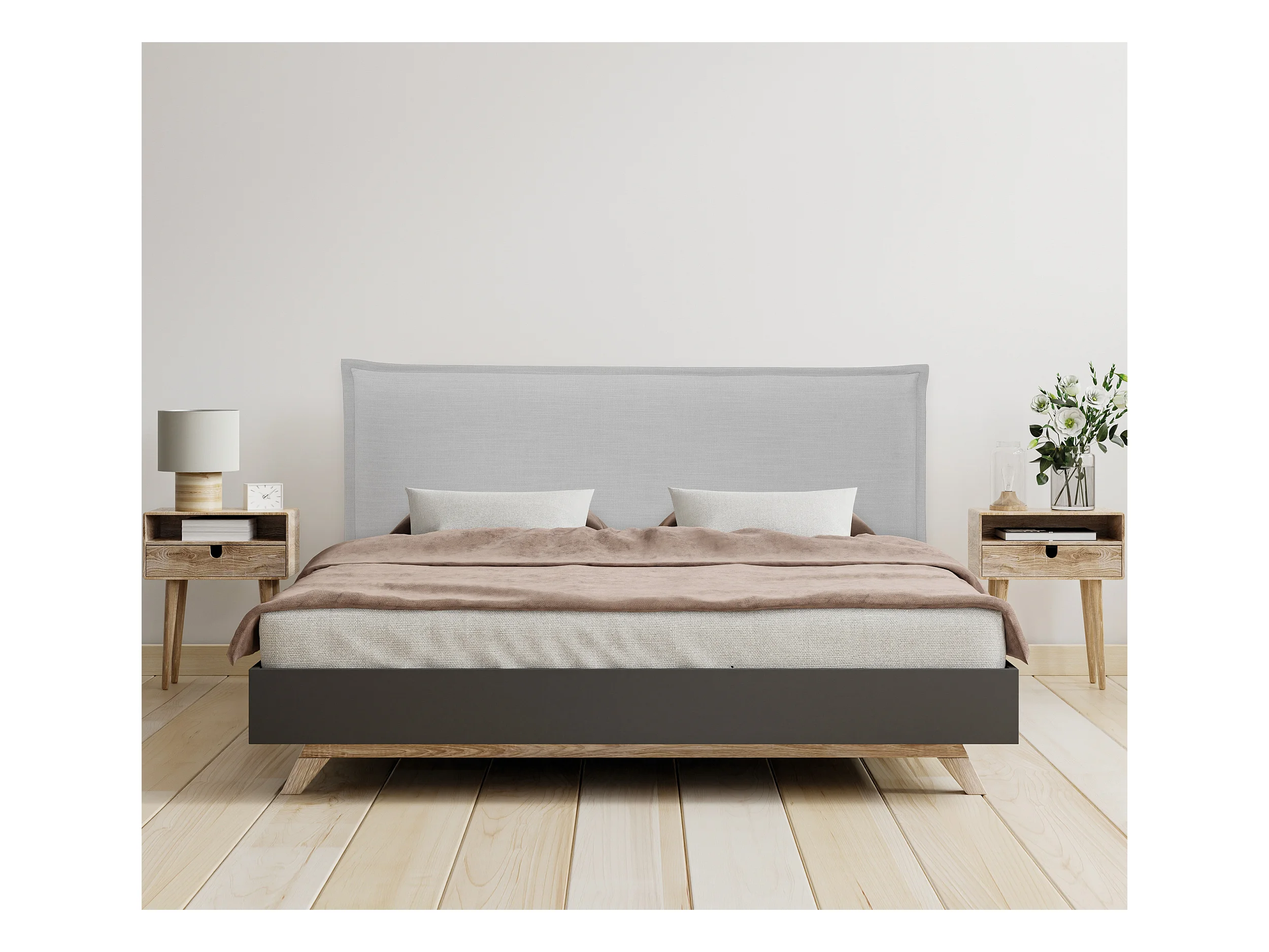 DHOME Kopfteil aus Naturleinen mit Paspelierung 145x105cm Mit Beinen Betten 135/140 - Hellgrau