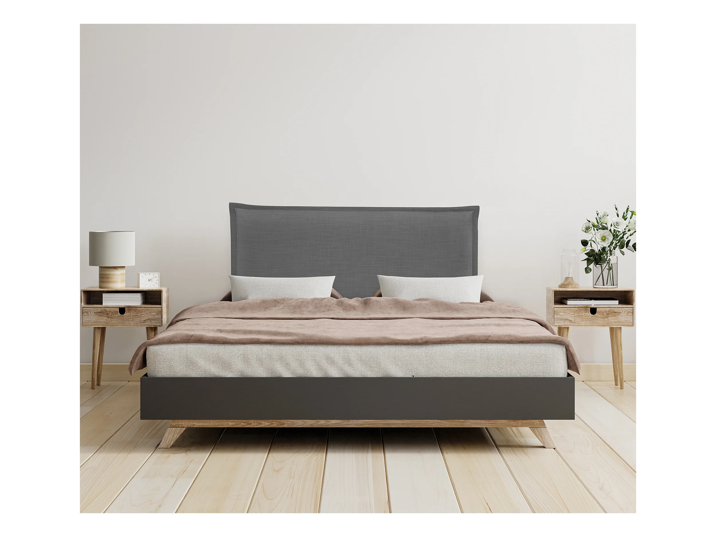 DHOME Kopfteil aus Naturleinen mit Paspelierung 95x105cm Mit Beinen Betten 90 - Dunkelgrau