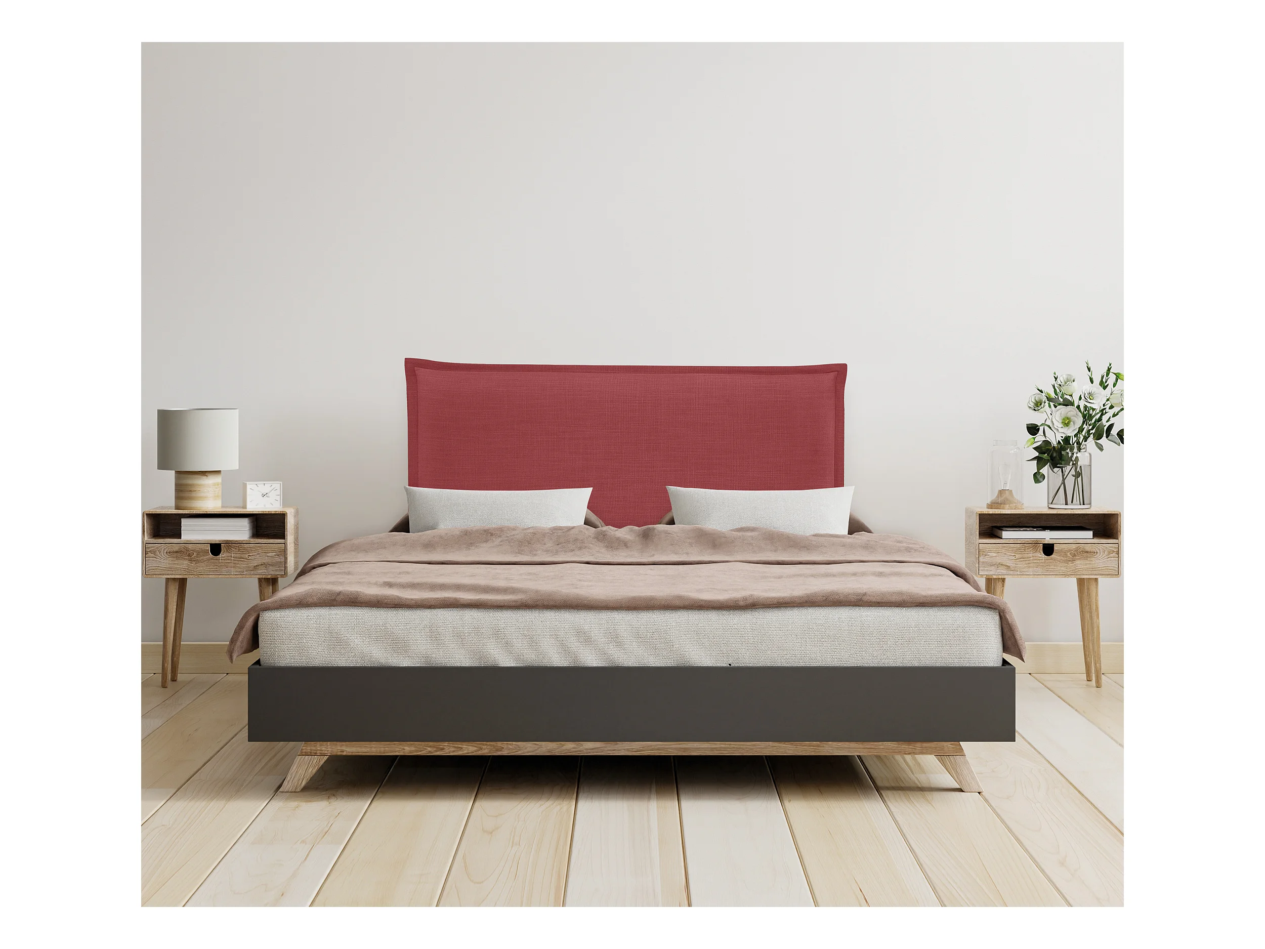 DHOME Kopfteil aus Naturleinen mit Paspelierung 95x50cm Betten 90 - Rot