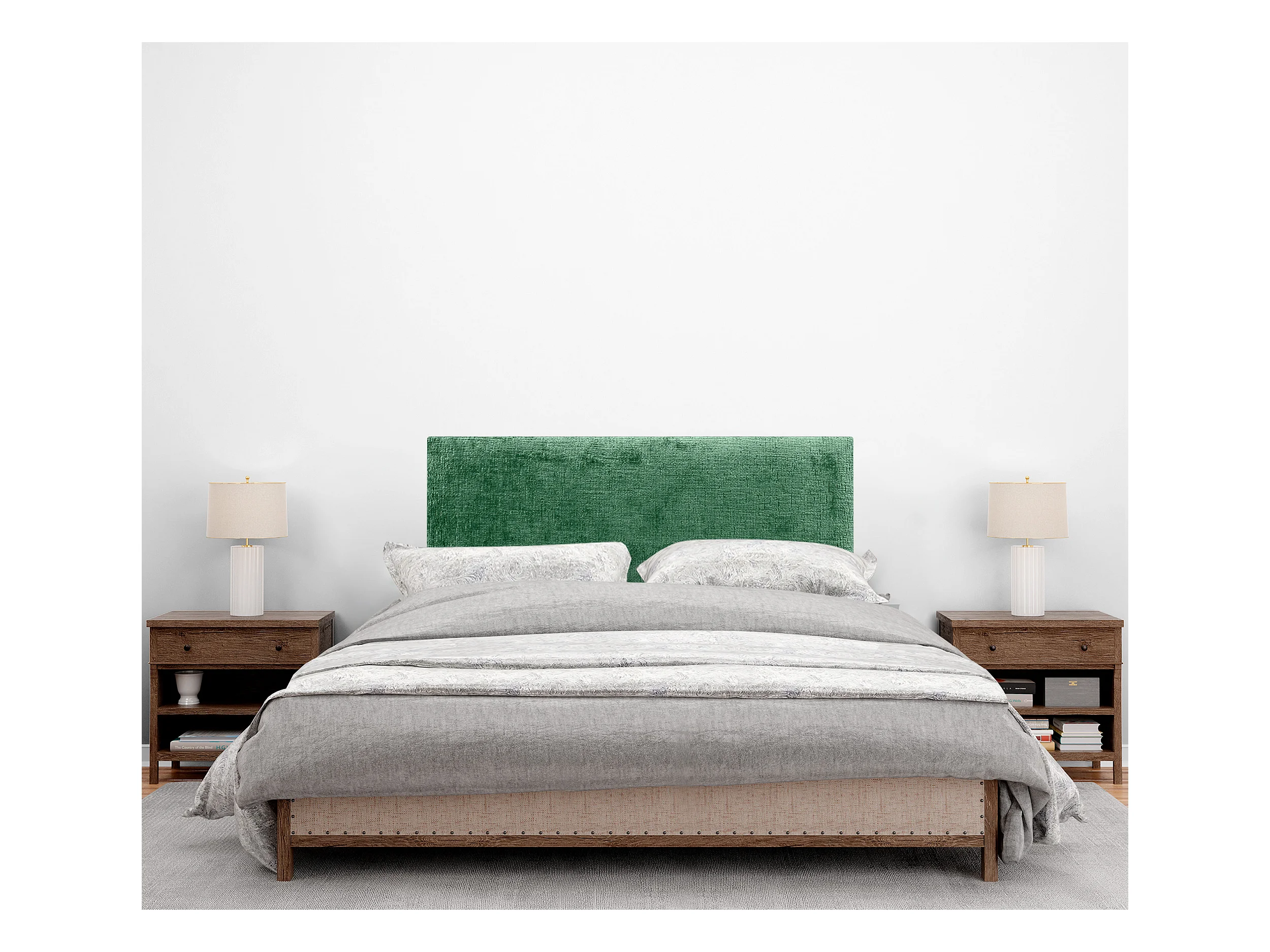 DHOME Kopfteil aus Naturwolle 95 x 105 cm mit Bettbeinen 90 – Grün