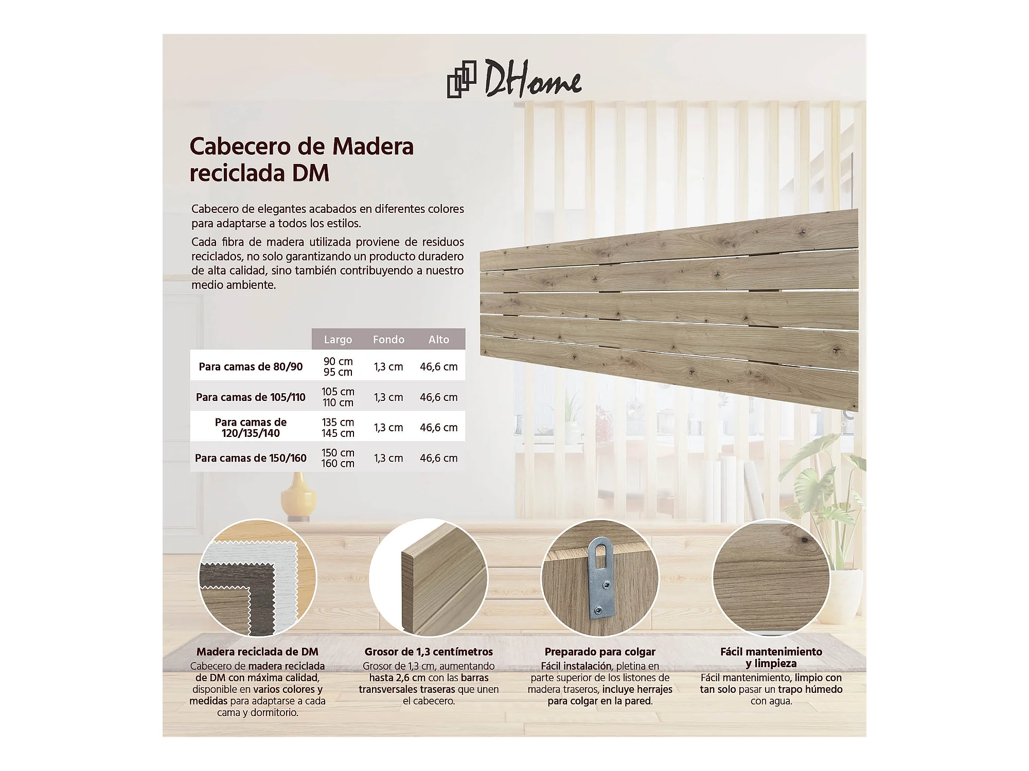 DHOME Kopfteil aus recyceltem Holz, Dm, horizontal, Palettenstil, 160 x 46 cm, Betten 150/160 – Eiche