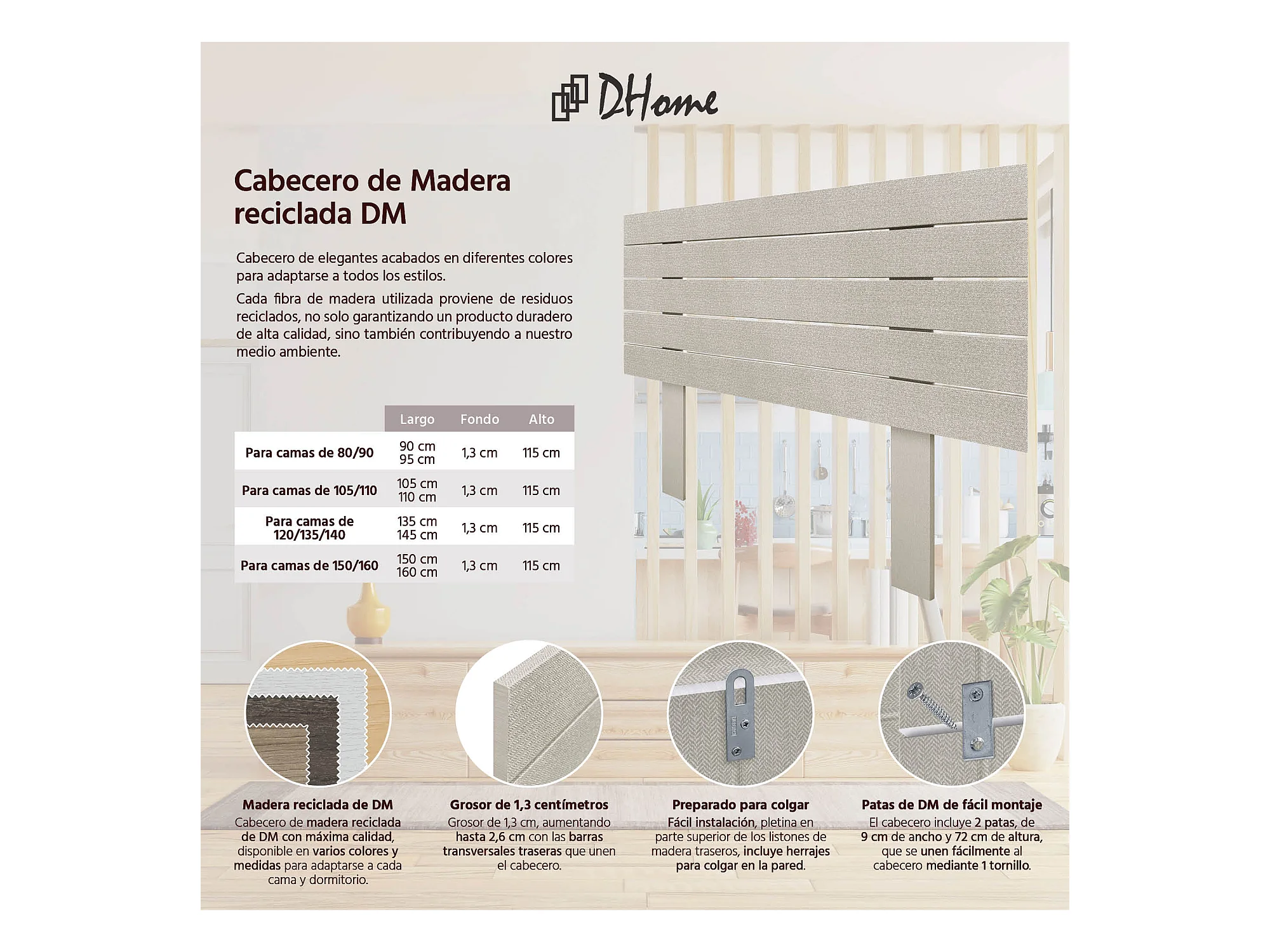 DHOME Kopfteil aus recyceltem Holz, Dm, horizontal, Palettenstil mit Beinen, 105 x 115 cm, Betten 105 – beige Spikes