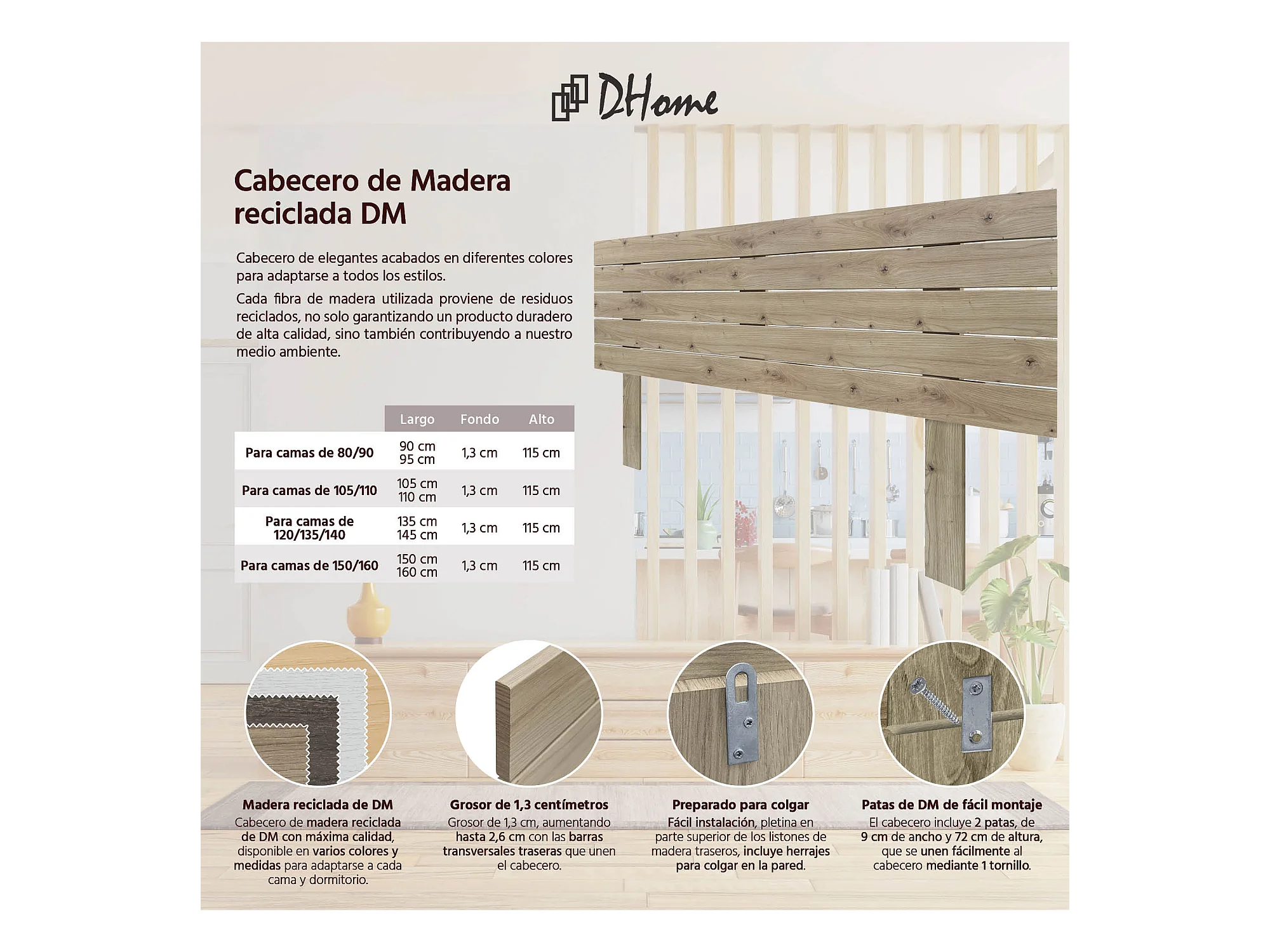 DHOME Kopfteil aus recyceltem Holz, Dm, horizontal, Palettenstil mit Beinen, 145 x 115 cm, Betten 145 – Eiche
