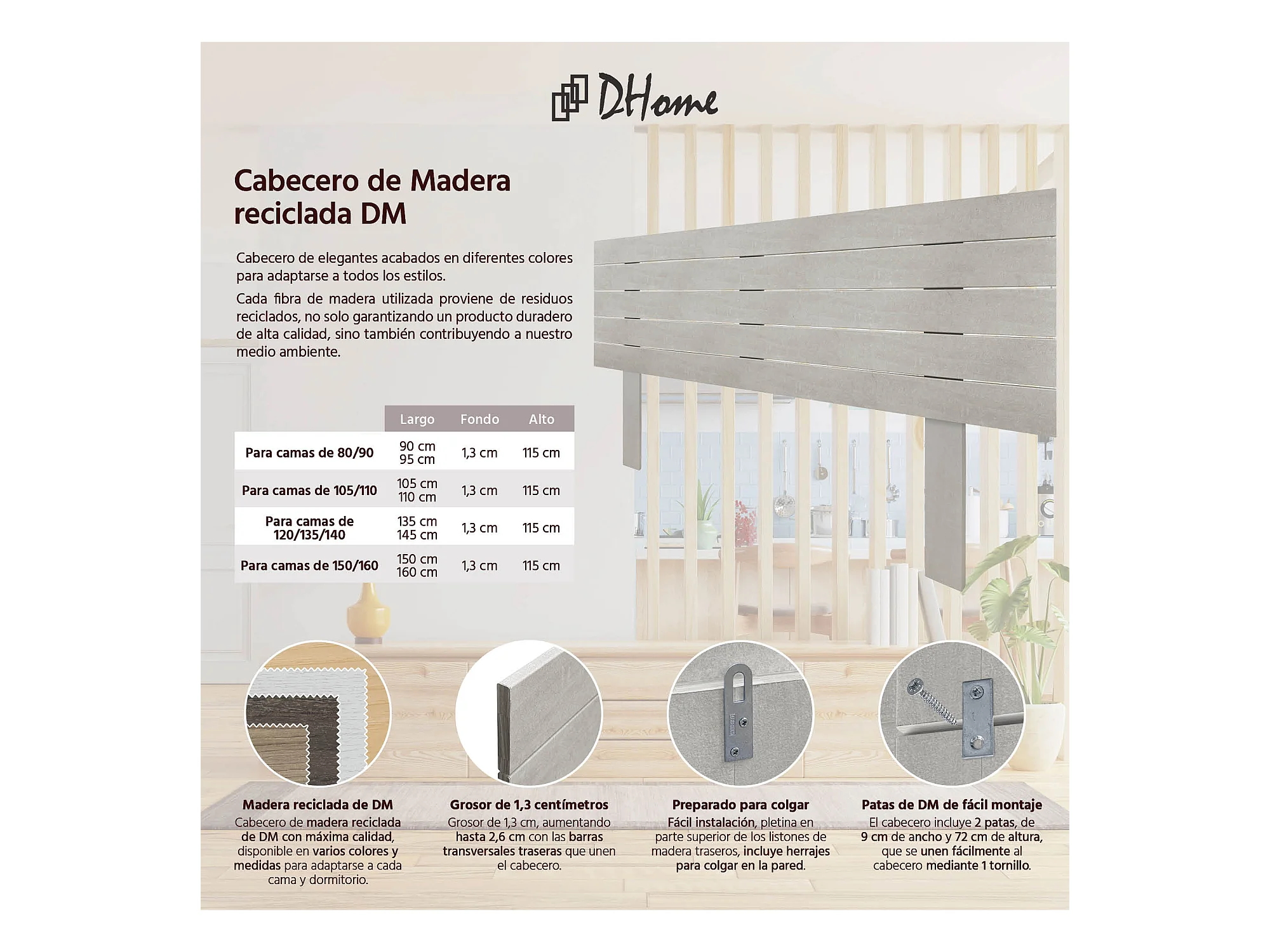 DHOME Kopfteil aus recyceltem Holz, Dm, horizontal, Palettenstil mit Beinen, 145 x 115 cm, Betten 145 – Stammesgrau