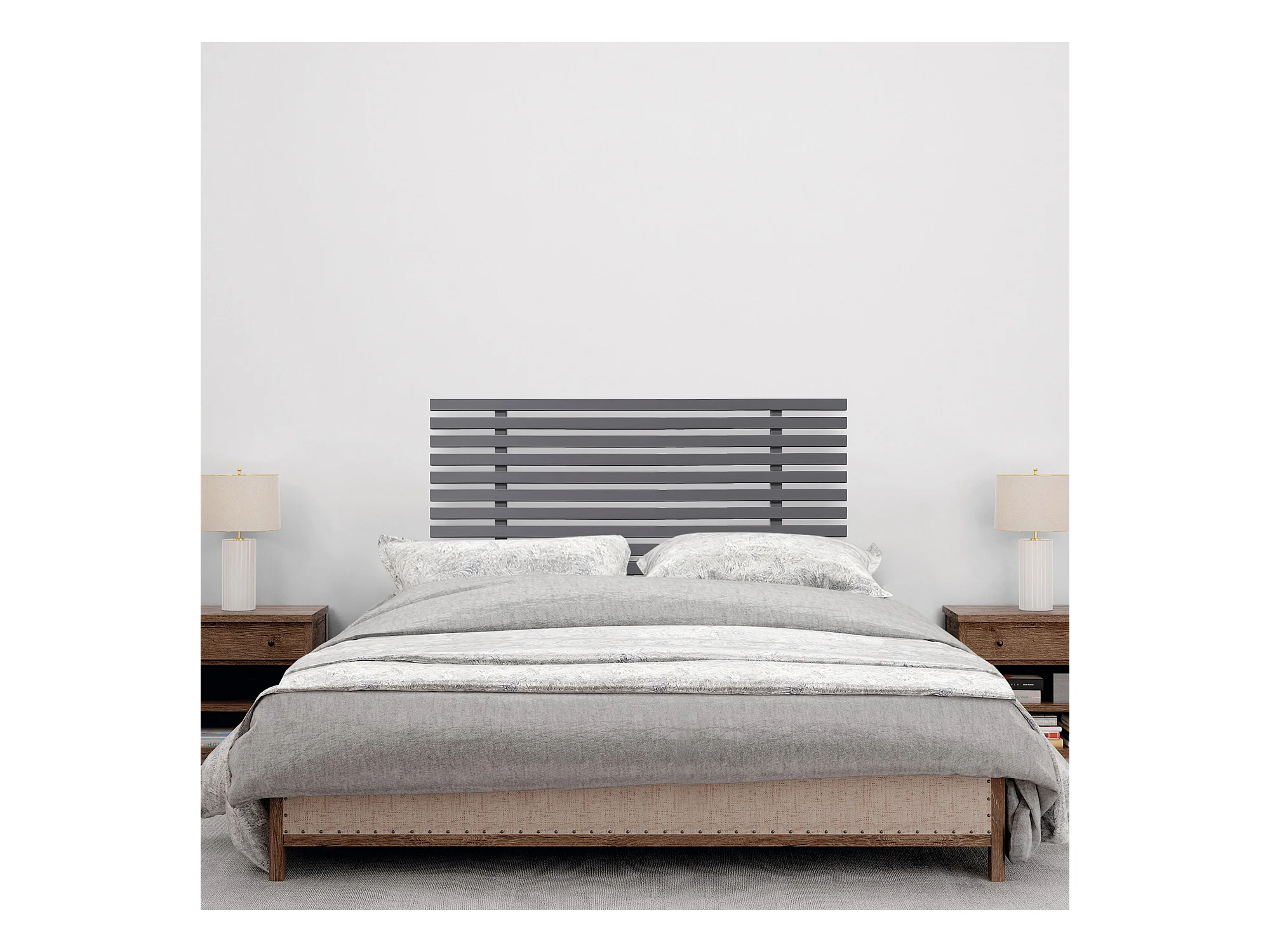 DHOME Kopfteil aus recyceltem Holz Dm im japanischen Stil mit Beinen 105 x 115 cm, Betten 105 – Massives Grau