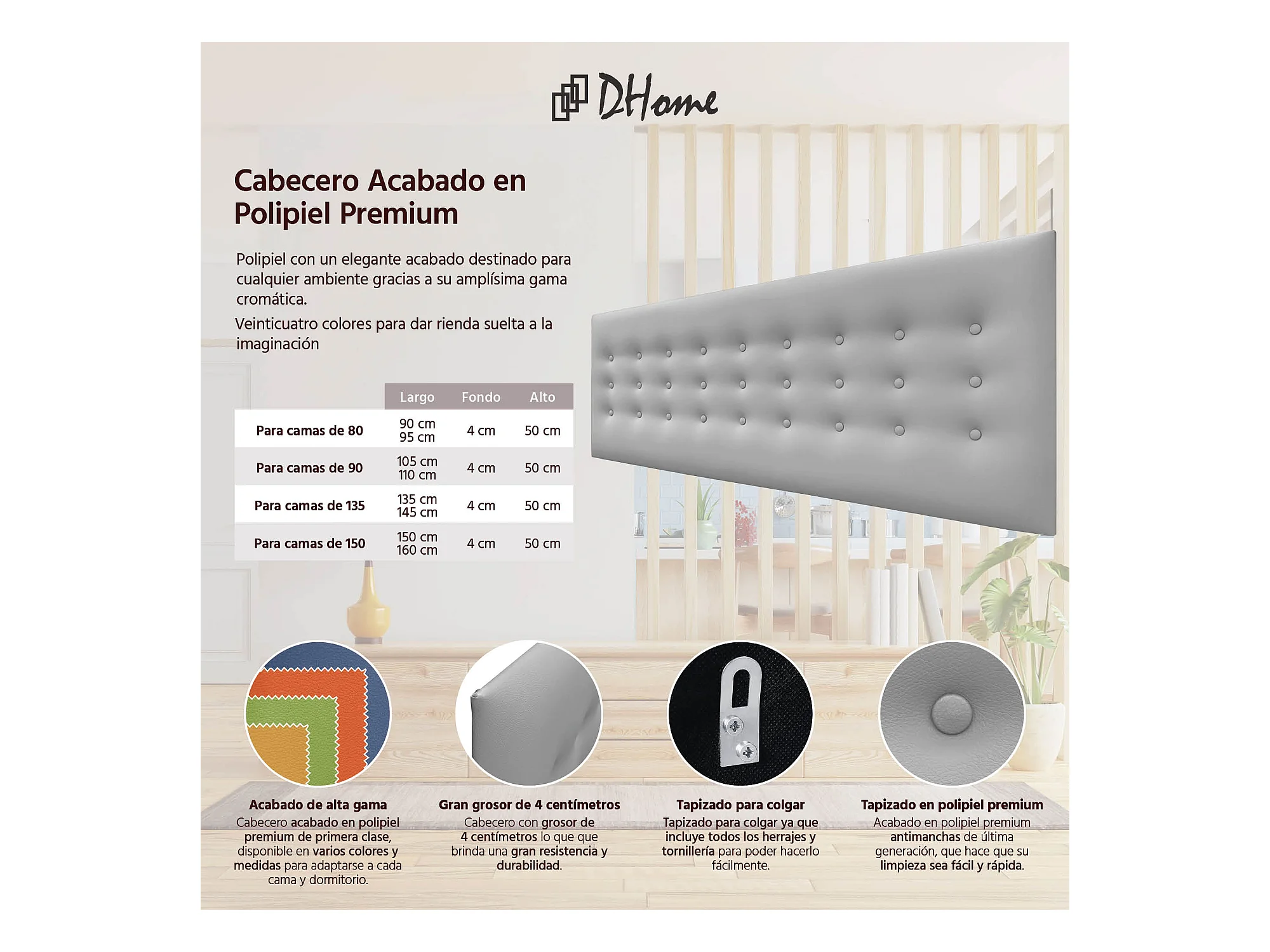 DHOME Kopfteil de Kunstleder mit 3 Knopfreihen gepolstertes luxuriöses Bettkopfteil (Gris Claro, 145cm)
