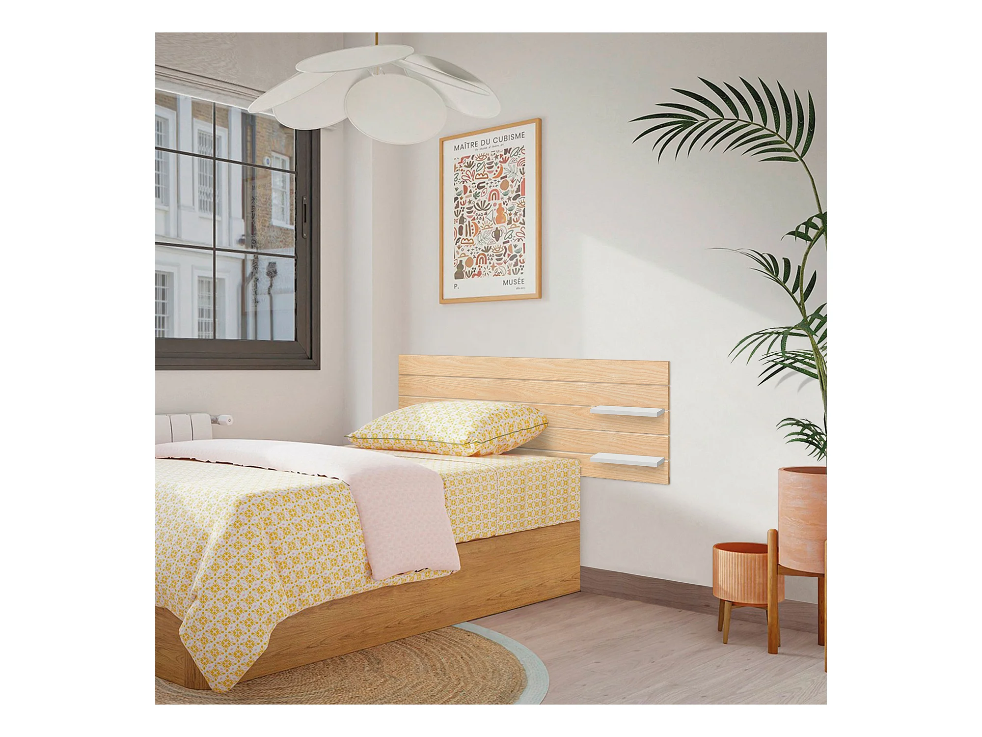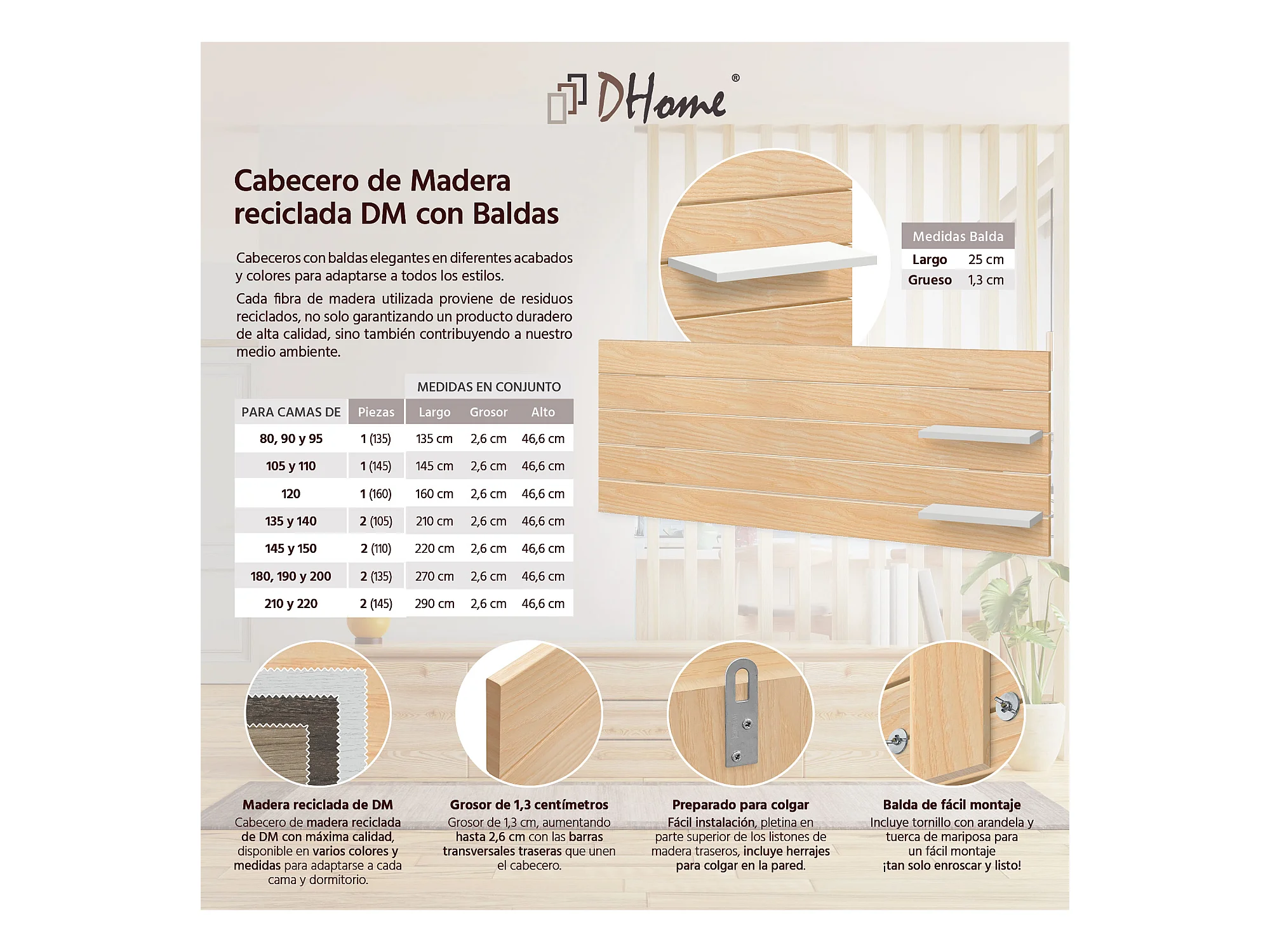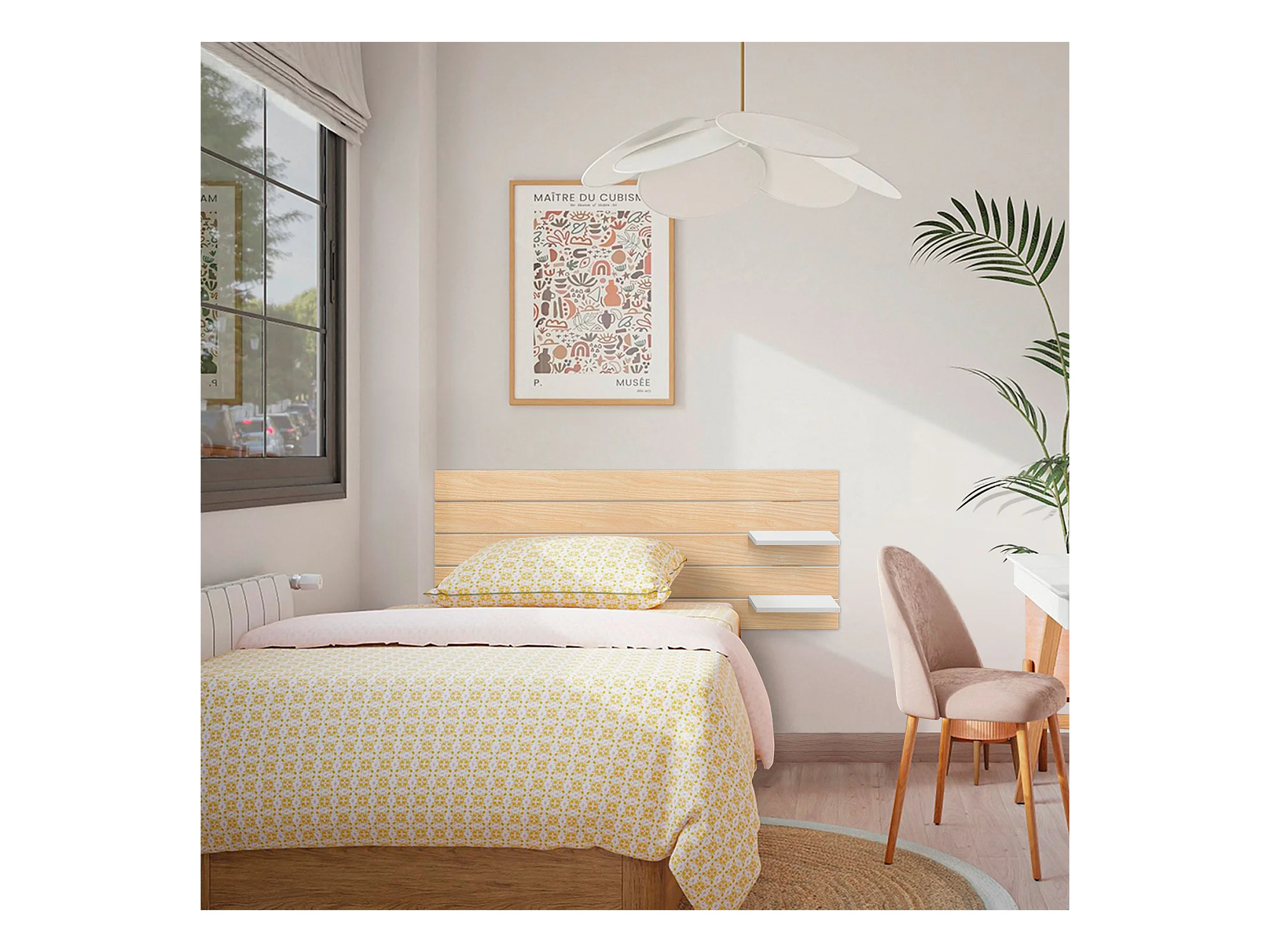 DHOME Kopfteil mit Regalen aus recyceltem Holz, DM-Wandbehang, horizontales Bett im Paletten-Stil, Vintage-Bett (Naturholz/Weiß, 135 cm)