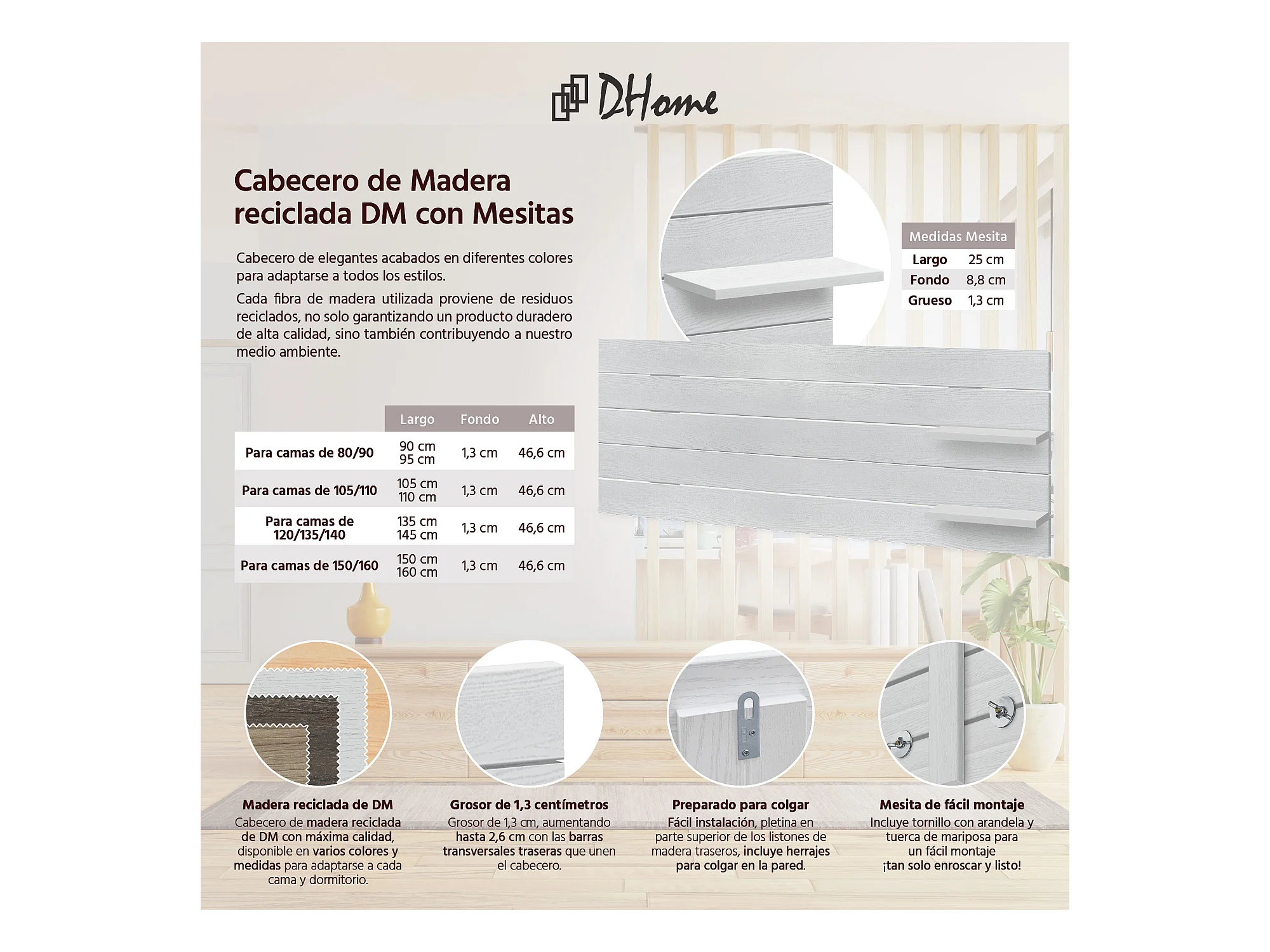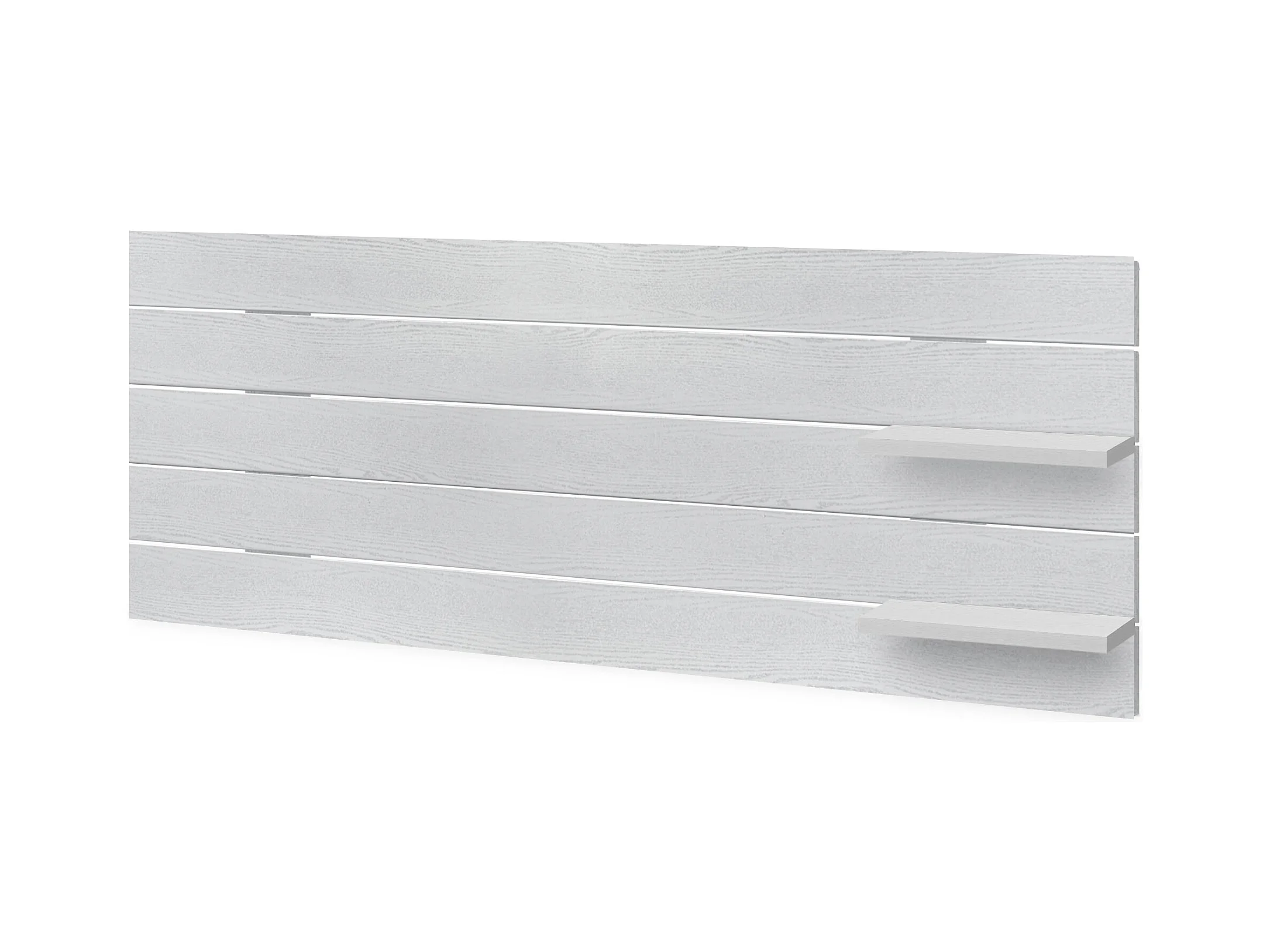 DHOME Kopfteil mit Regalen aus recyceltem Holz, DM-Wandbehang, horizontales Paletten-Stil, nordisches Vintage-Bett (145 cm, weißes Holz)