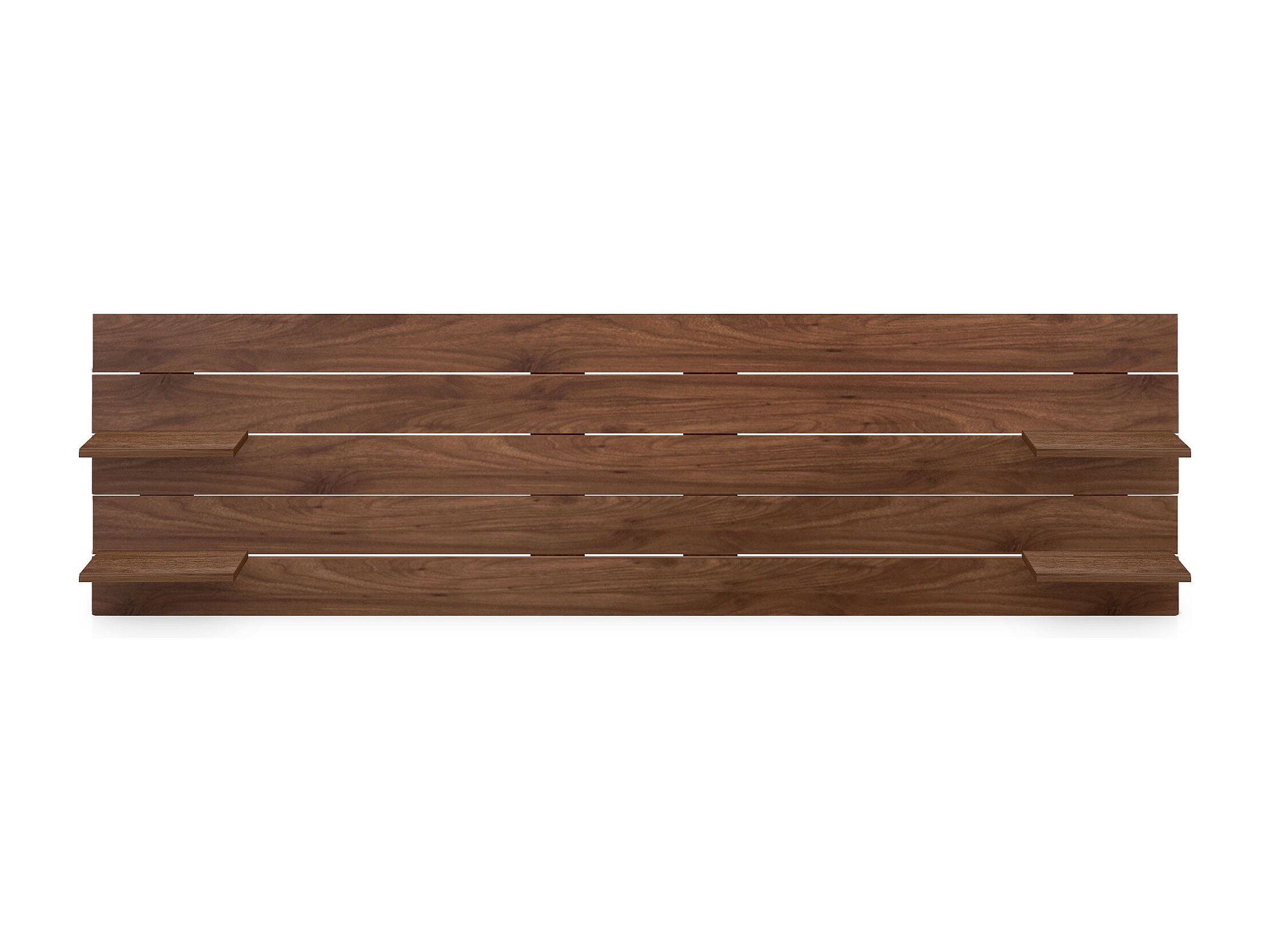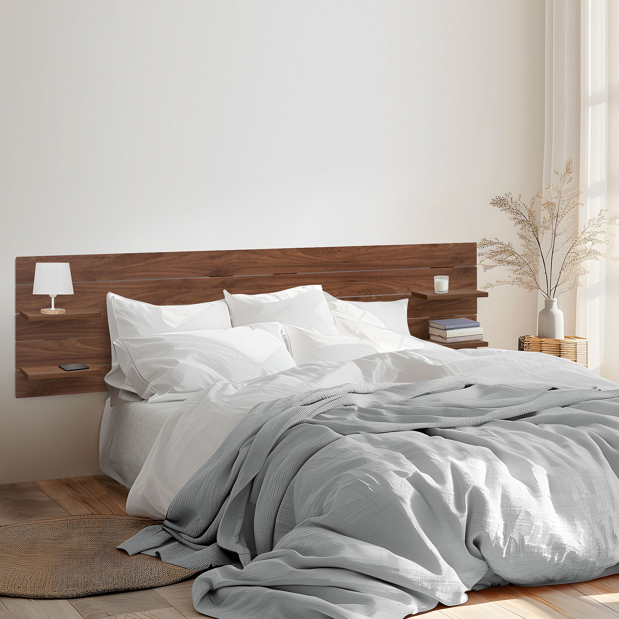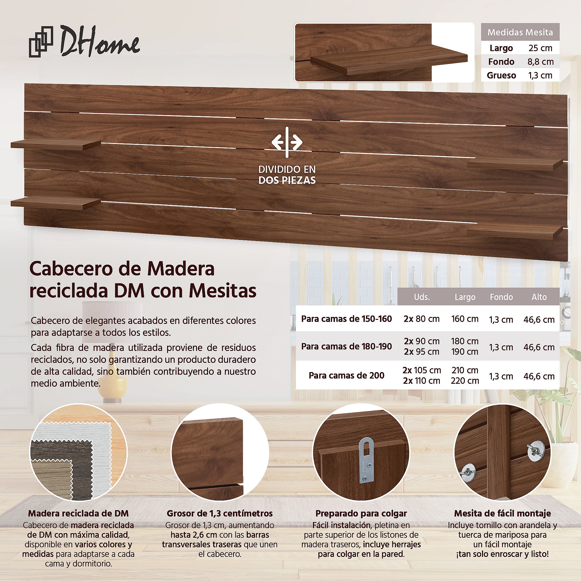 DHOME Kopfteil mit Regalen aus recyceltem Holz, DM-Wandbehang, horizontales Paletten-Stil, nordisches Vintage-Bett (210 cm Walnussholz)