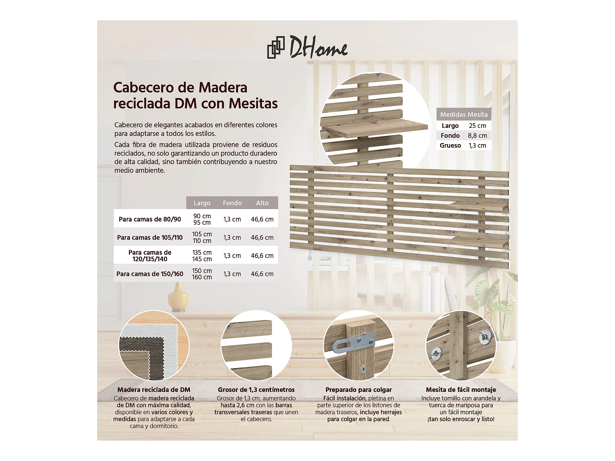 DHOME Kopfteil mit Regalen aus recyceltem Holz, DM-Wandbehang, japanischer Paletten-Stil, nordisches Vintage-Bett (135 cm Eiche)