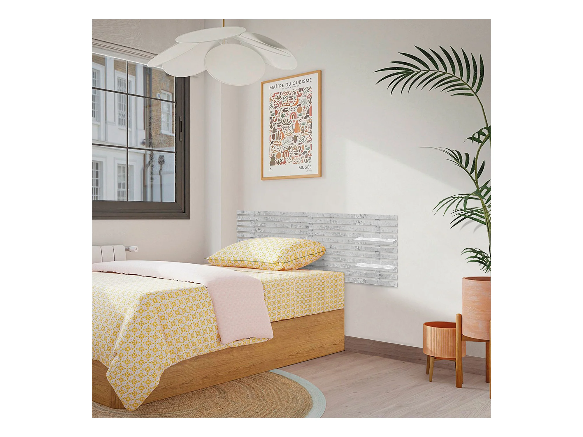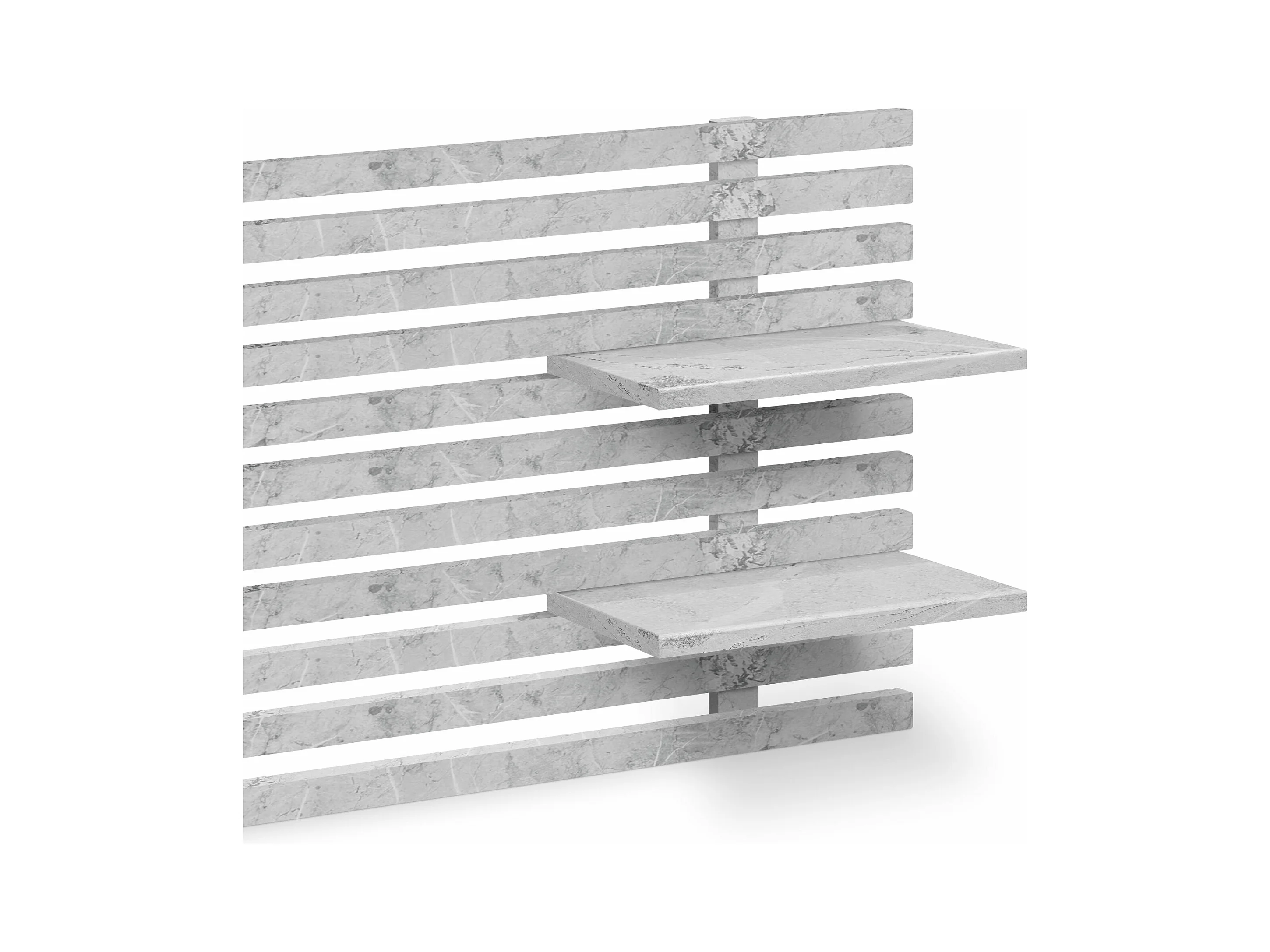 DHOME Kopfteil mit Regalen aus recyceltem Holz, DM-Wandbehang, japanischer Paletten-Stil, nordisches Vintage-Bett (160 cm Marmor-Finish)