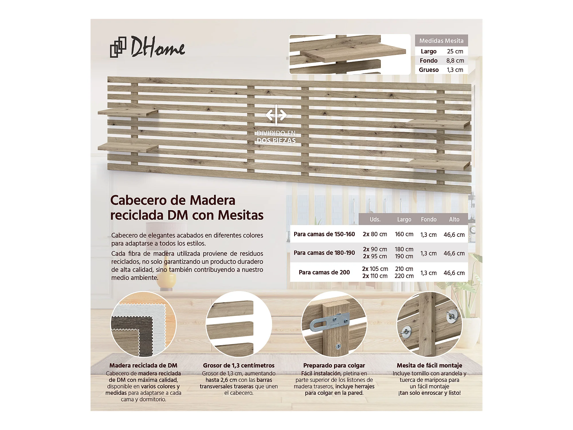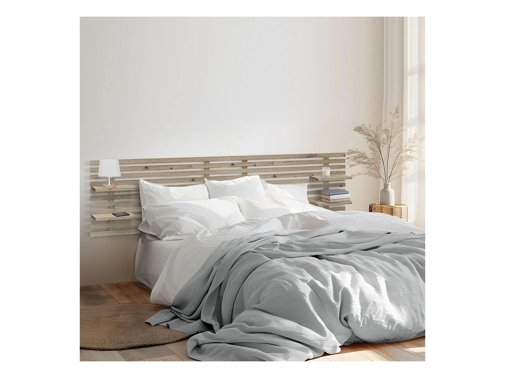 DHOME Kopfteil mit Regalen aus recyceltem Holz, DM-Wandbehang, japanischer Paletten-Stil, nordisches Vintage-Bett (290 cm Eiche)