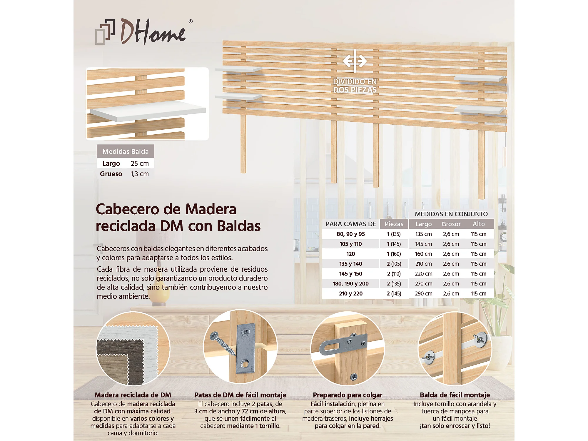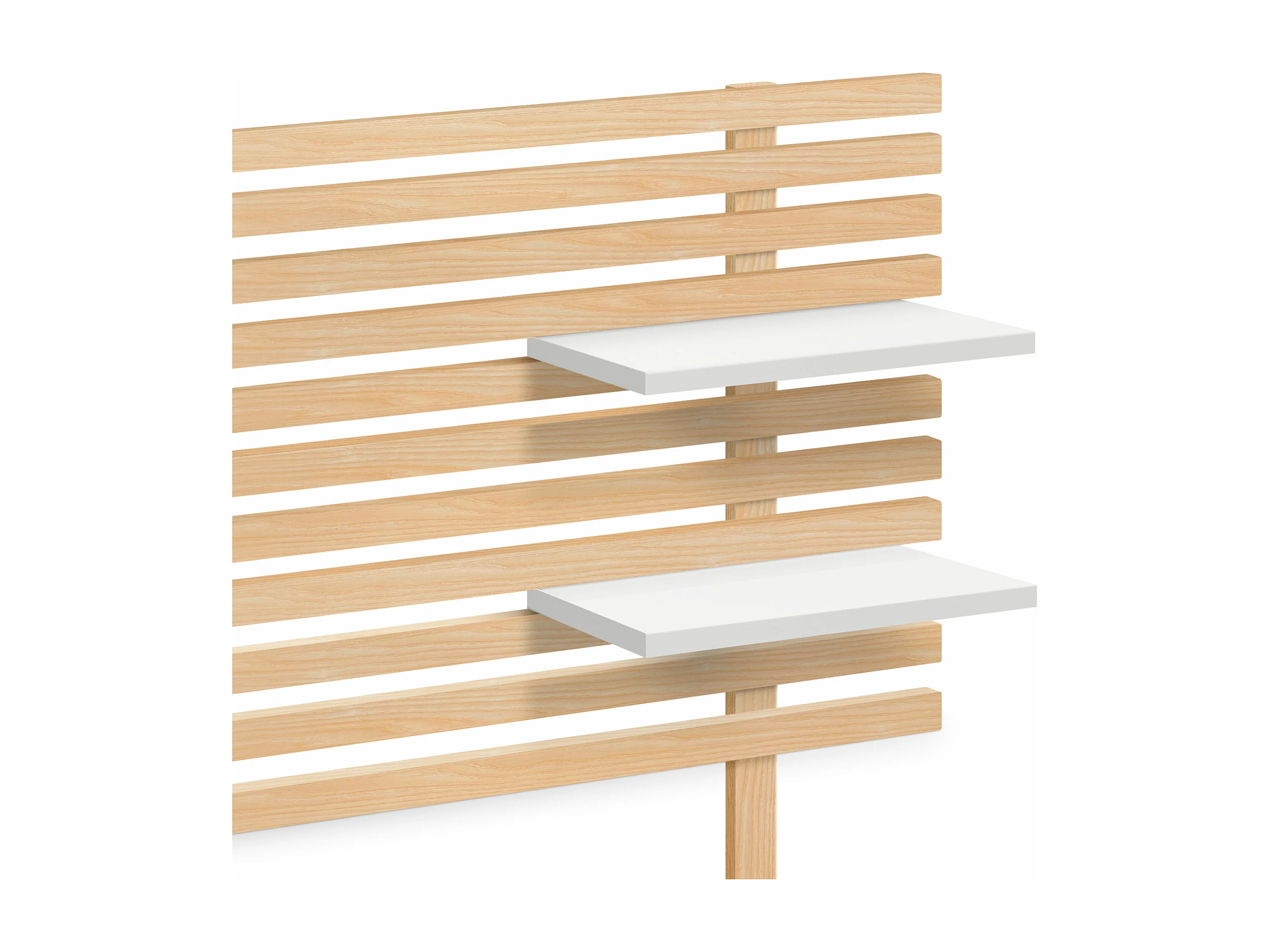 DHOME Kopfteil mit Regalen aus recyceltem MDF-Holz, Wandmontage, japanischer Palettenstil, mit Beinen, Vintage-Bett (Naturholz/Weiß, 290 cm, Doppelbett)
