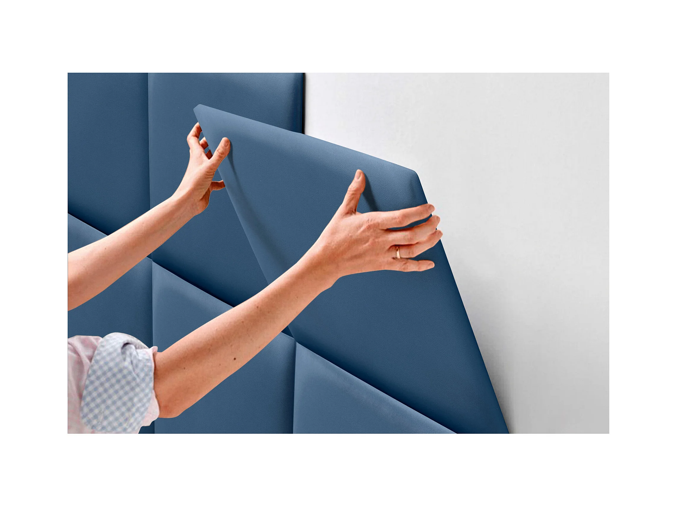 DHOME Premium-Kopfteil mit Kunstlederbezug, aus austauschbaren, selbstklebenden Paneelen, luxuriös gepolstertes Schlafzimmer (blau, 220 cm)