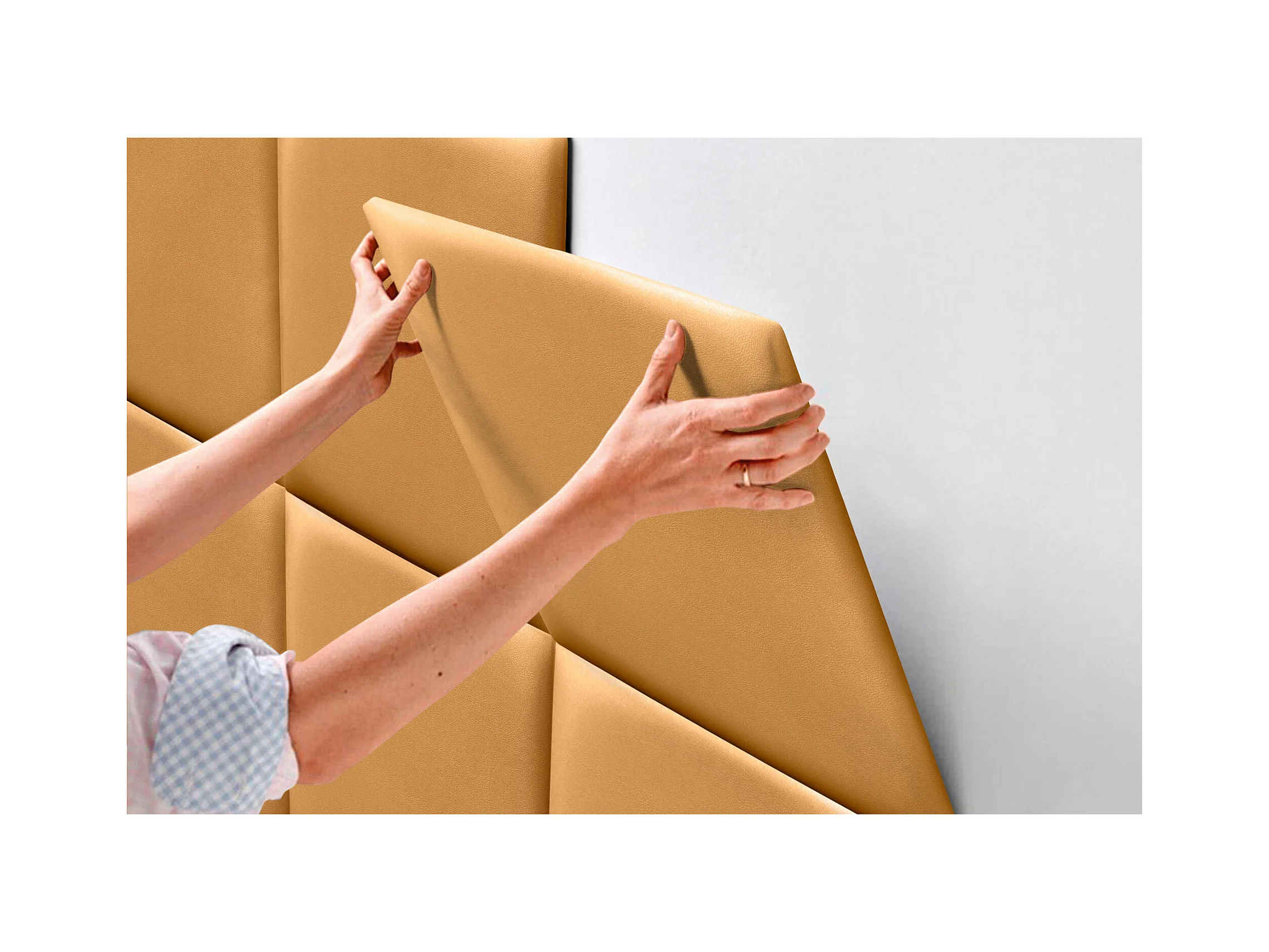 DHOME Premium-Kopfteil mit Kunstlederbezug, aus austauschbaren, selbstklebenden Paneelen, luxuriös gepolstertes Schlafzimmer (Gold, 220 cm)