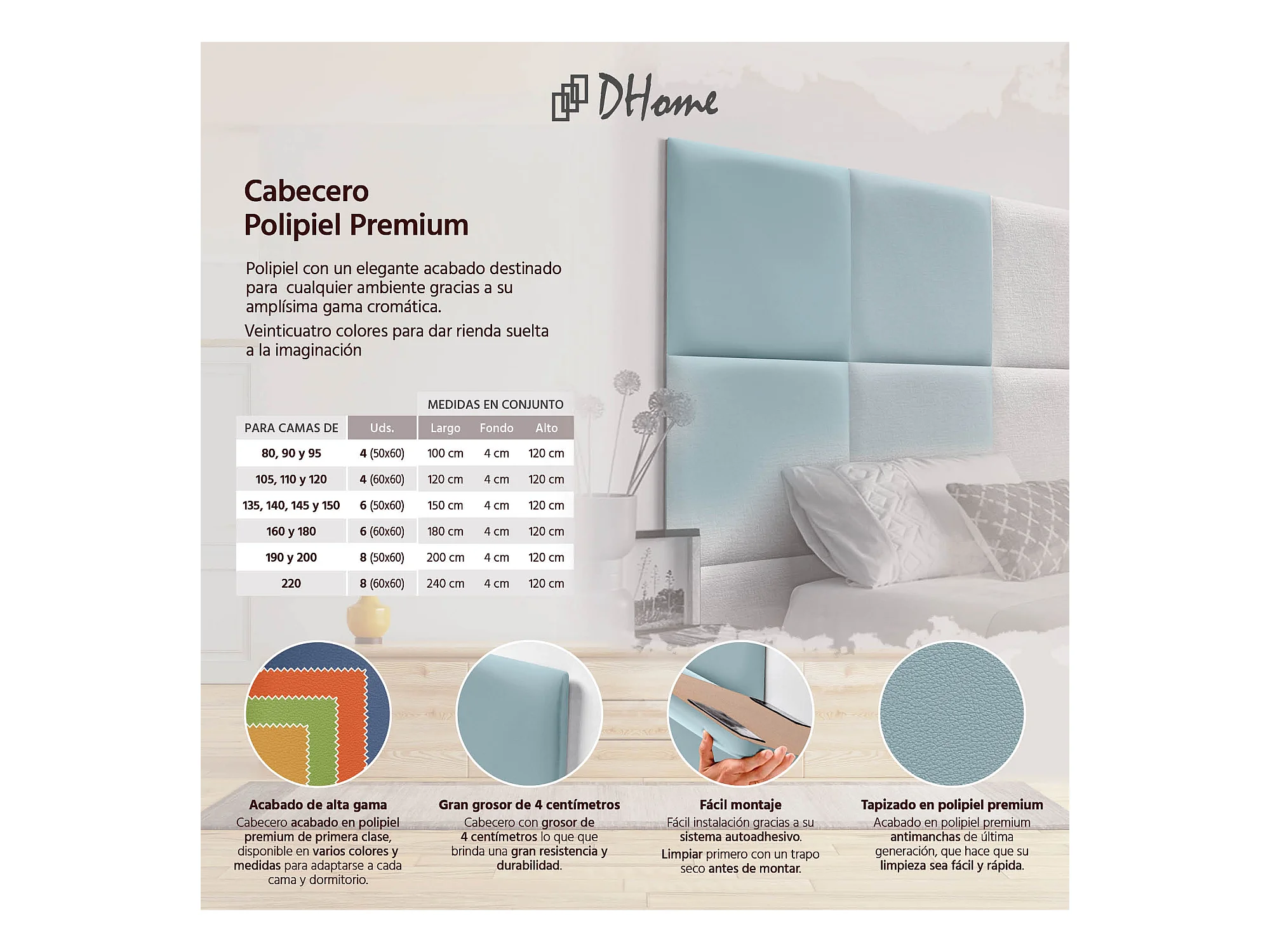DHOME Premium-Kopfteil mit Kunstlederbezug, aus austauschbaren, selbstklebenden Paneelen, luxuriös gepolstertes Schlafzimmer (Hellblau, 160 cm)