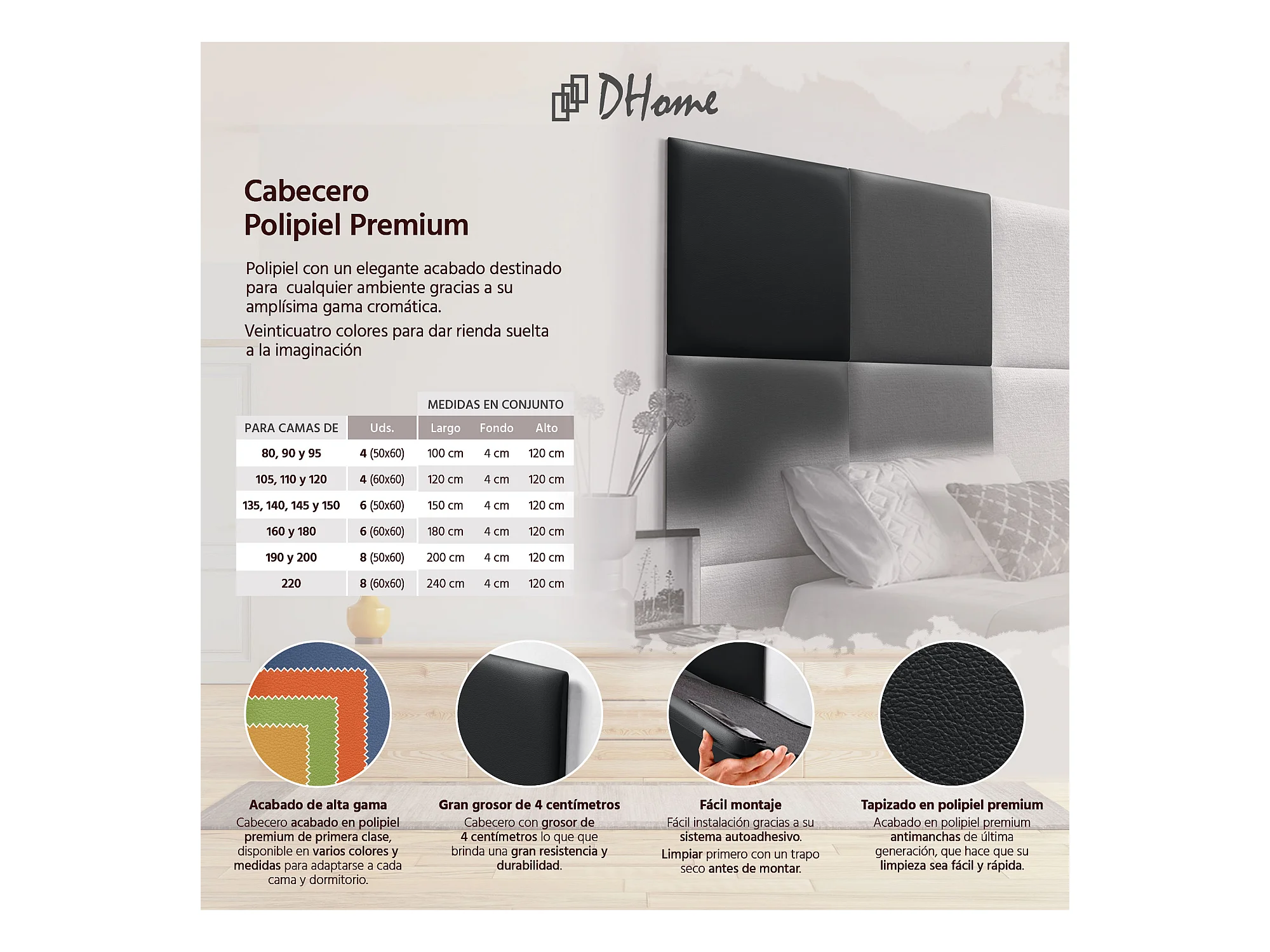 DHOME Premium-Kopfteil mit Kunstlederbezug, aus austauschbaren, selbstklebenden Paneelen, luxuriös gepolstertes Schlafzimmer (schwarz, 140 cm)