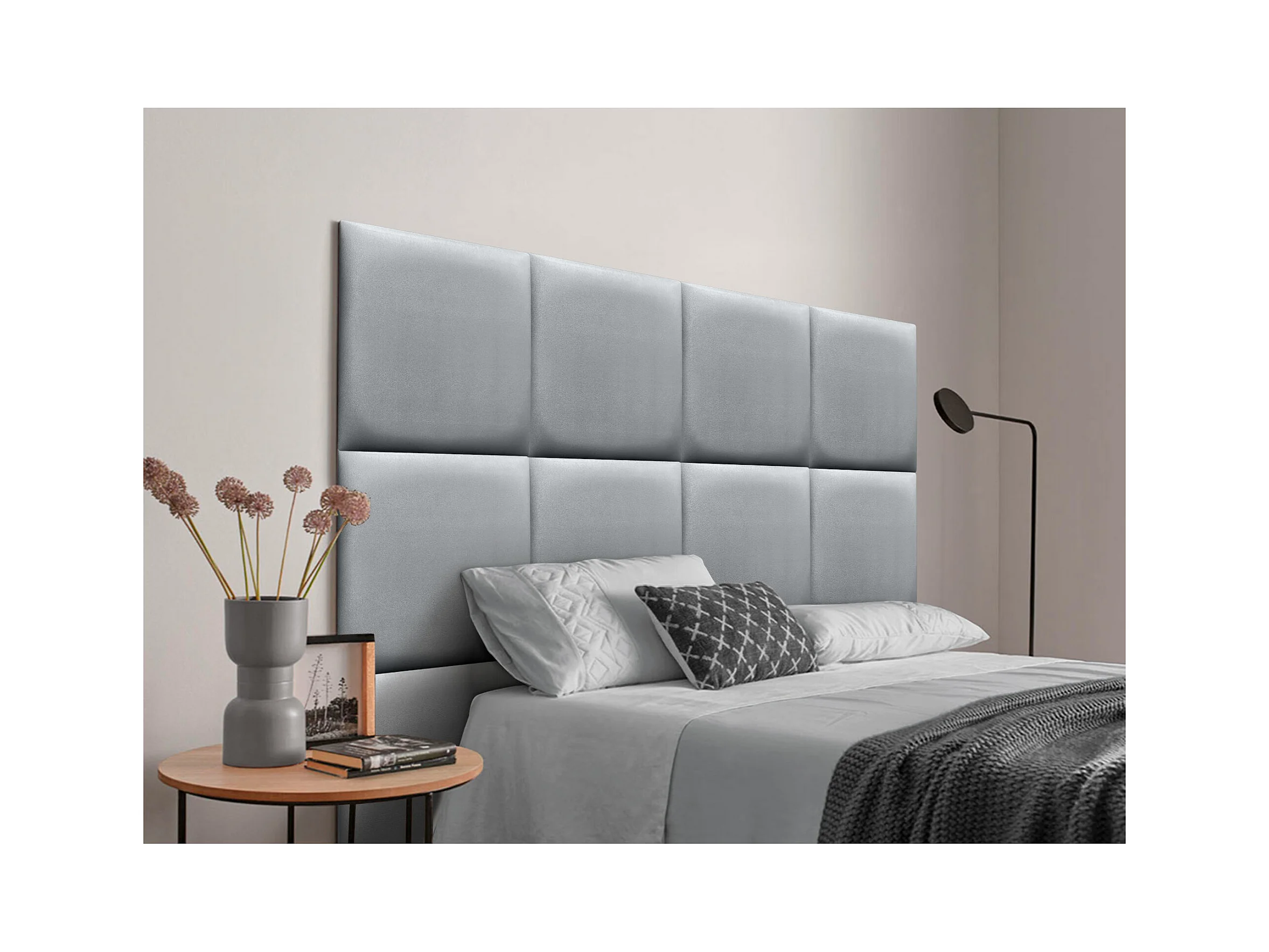 DHOME Premium-Kopfteil mit Kunstlederbezug, aus austauschbaren, selbstklebenden Paneelen, luxuriös gepolstertes Schlafzimmer (Silber, 140 cm)