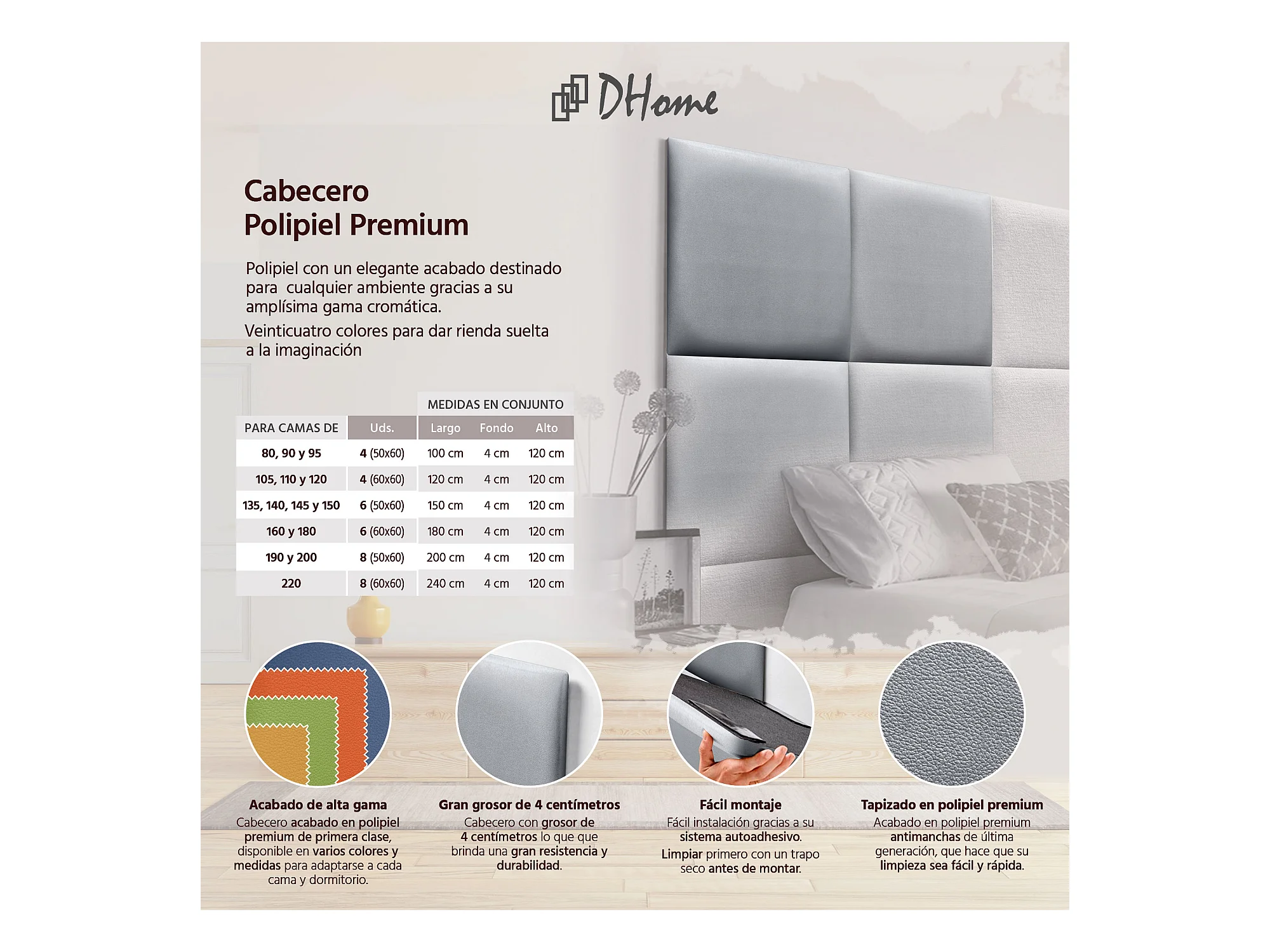 DHOME Premium-Kopfteil mit Kunstlederbezug, aus austauschbaren, selbstklebenden Paneelen, luxuriös gepolstertes Schlafzimmer (Silber, 220 cm)