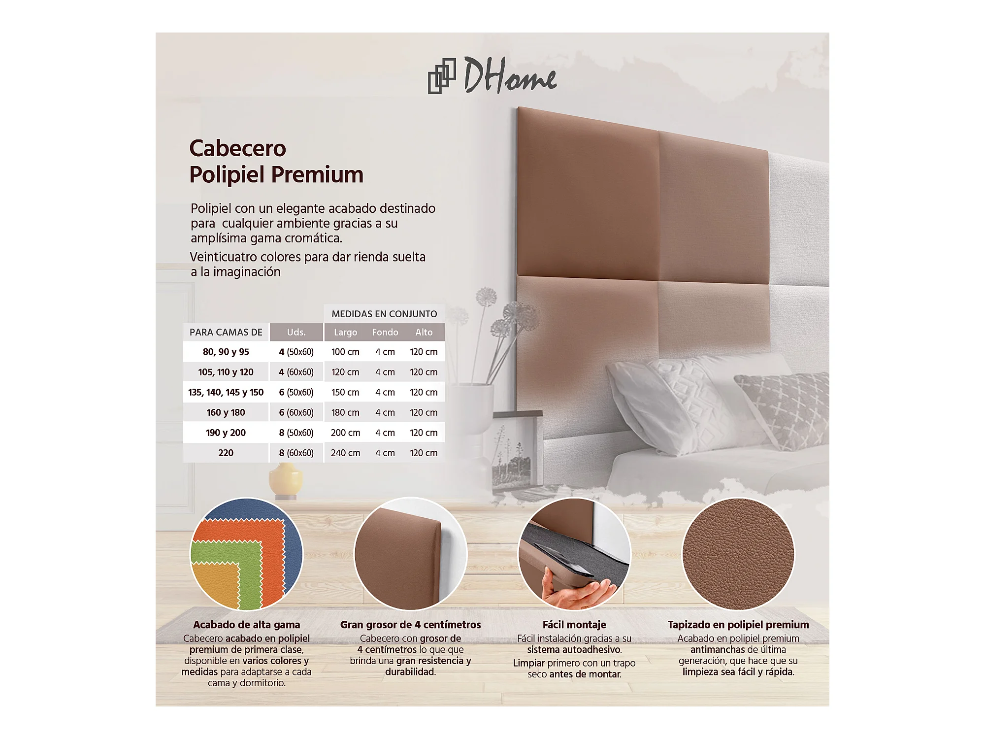 DHOME Premium-Kopfteil mit Kunstlederbezug, aus austauschbaren, selbstklebenden Paneelen, luxuriös gepolstertes Schlafzimmer (Ton, 200 cm)