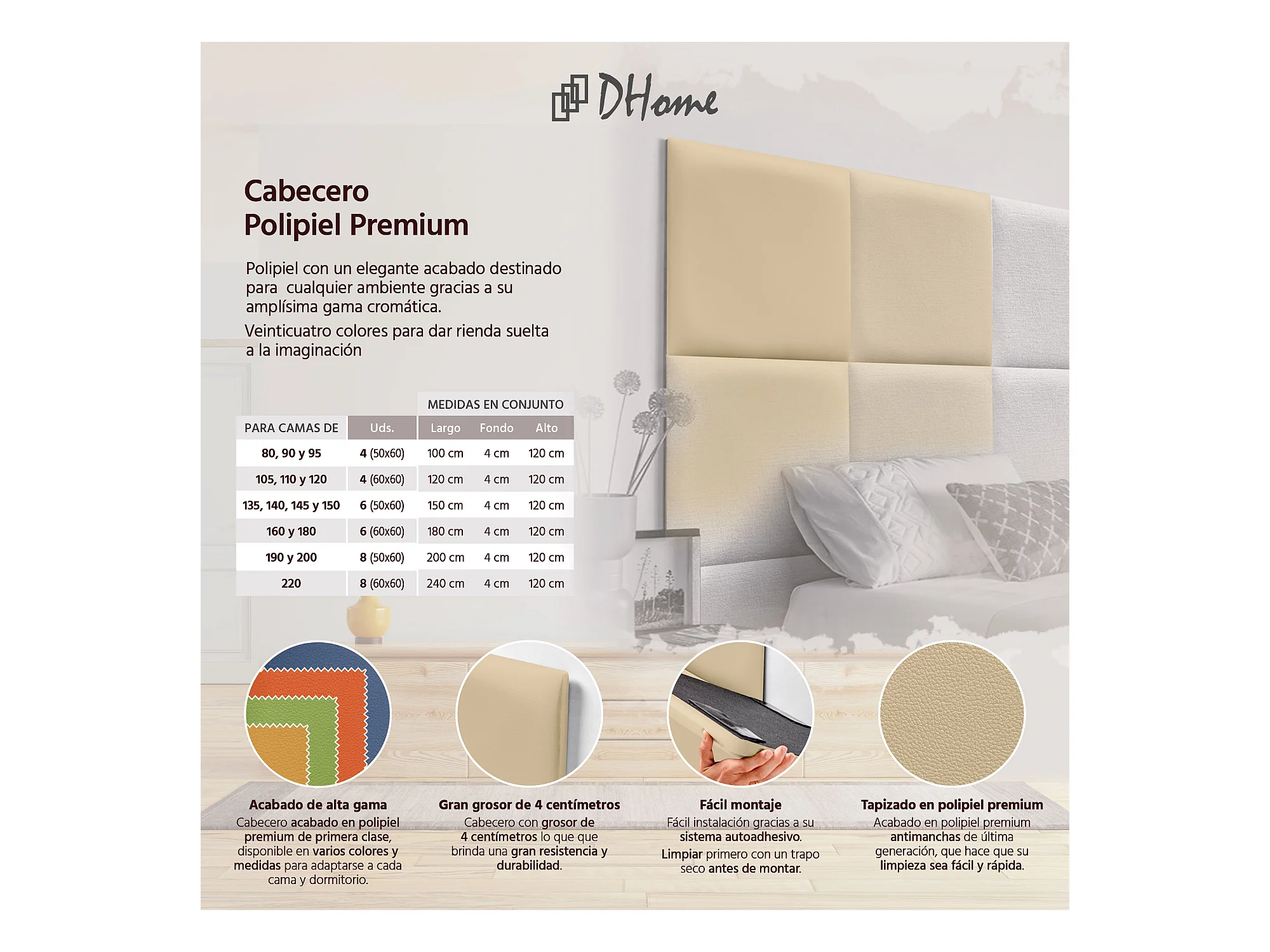 DHOME Premium-Kopfteil mit Kunstlederbezug, aus austauschbaren, selbstklebenden Paneelen, luxuriös gepolstertes Schlafzimmer (Vanille, 150 cm)