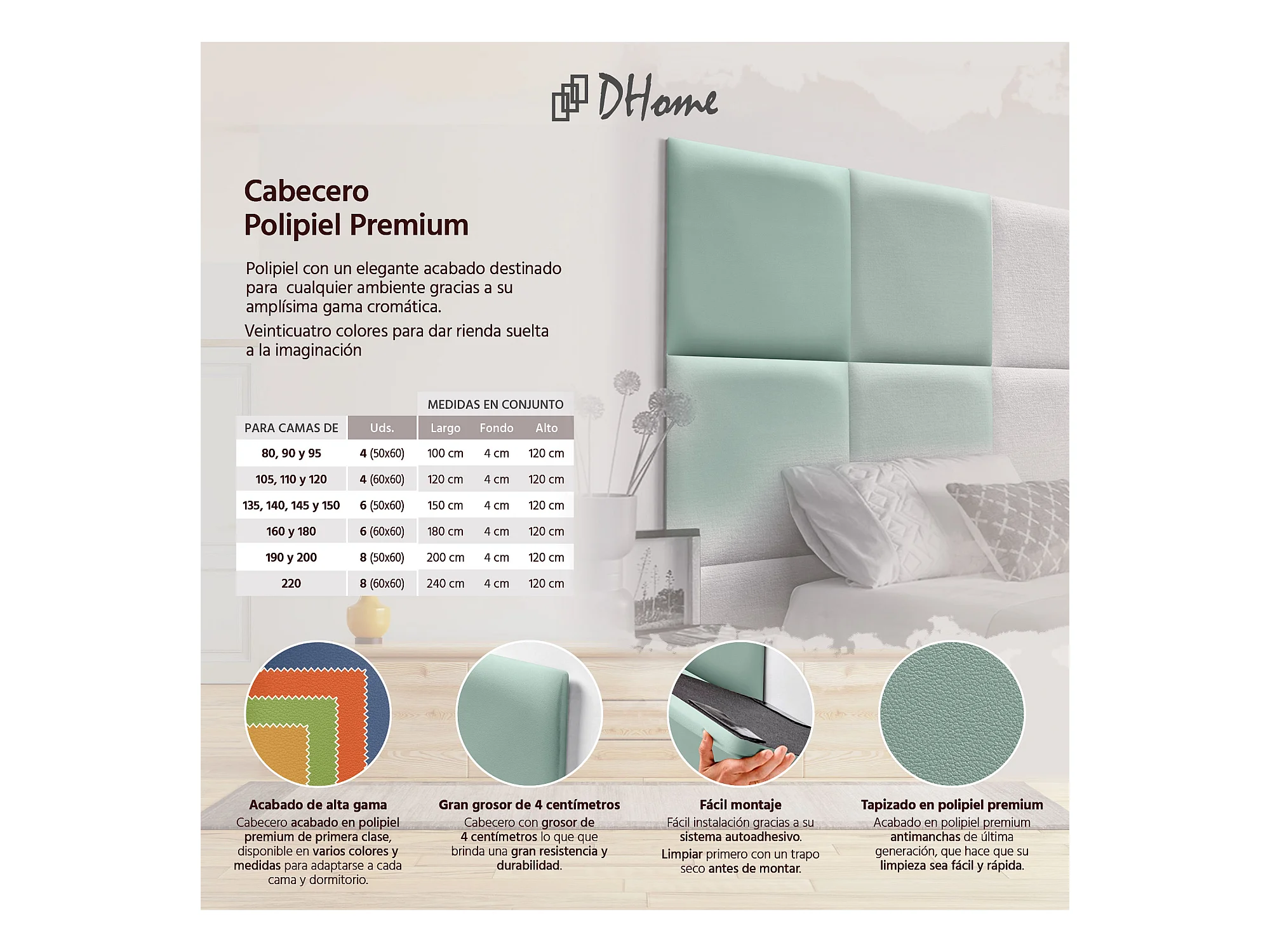DHOME Premium-Kopfteil mit Kunstlederbezug, aus austauschbaren, selbstklebenden Paneelen, luxuriös gepolstertes Schlafzimmer (Wassergrün, 220 cm)