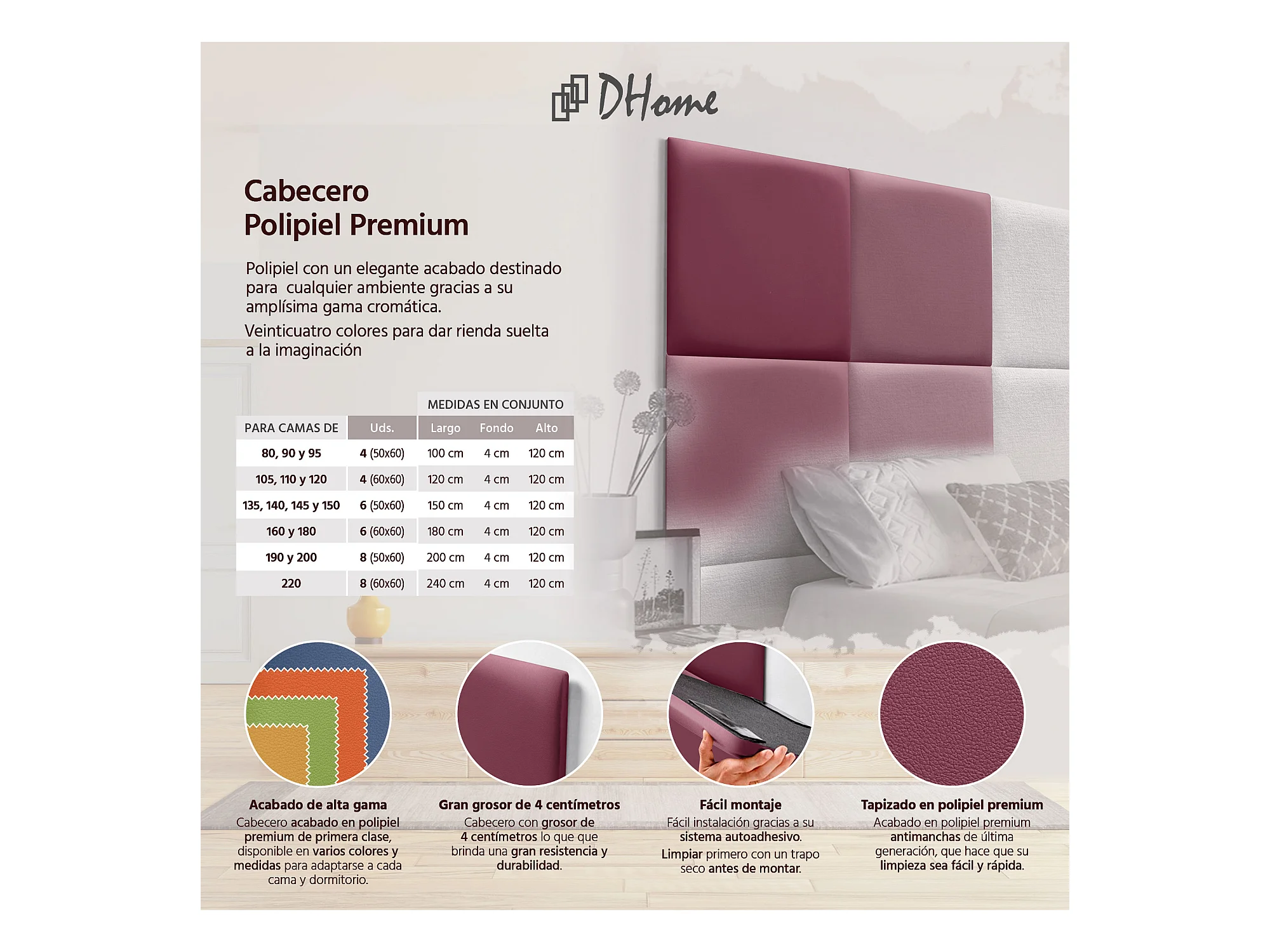 DHOME Premium-Kopfteil mit Kunstlederbezug, aus austauschbaren, selbstklebenden Paneelen, luxuriös gepolstertes Schlafzimmer (Weinrot, 90 cm)