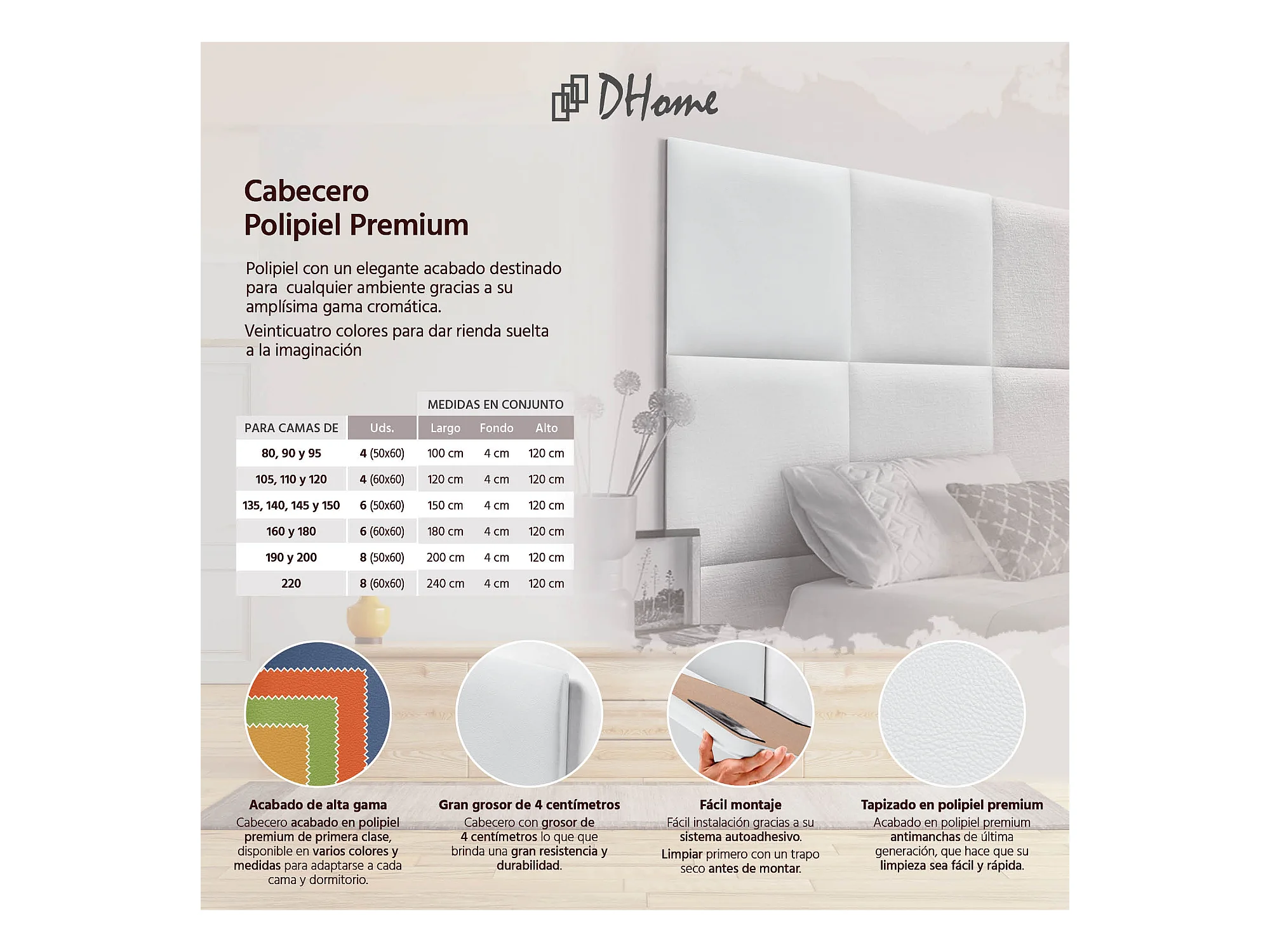 DHOME Premium-Kopfteil mit Kunstlederbezug, aus austauschbaren, selbstklebenden Paneelen, luxuriös gepolstertes Schlafzimmer (weiß, 90 cm)