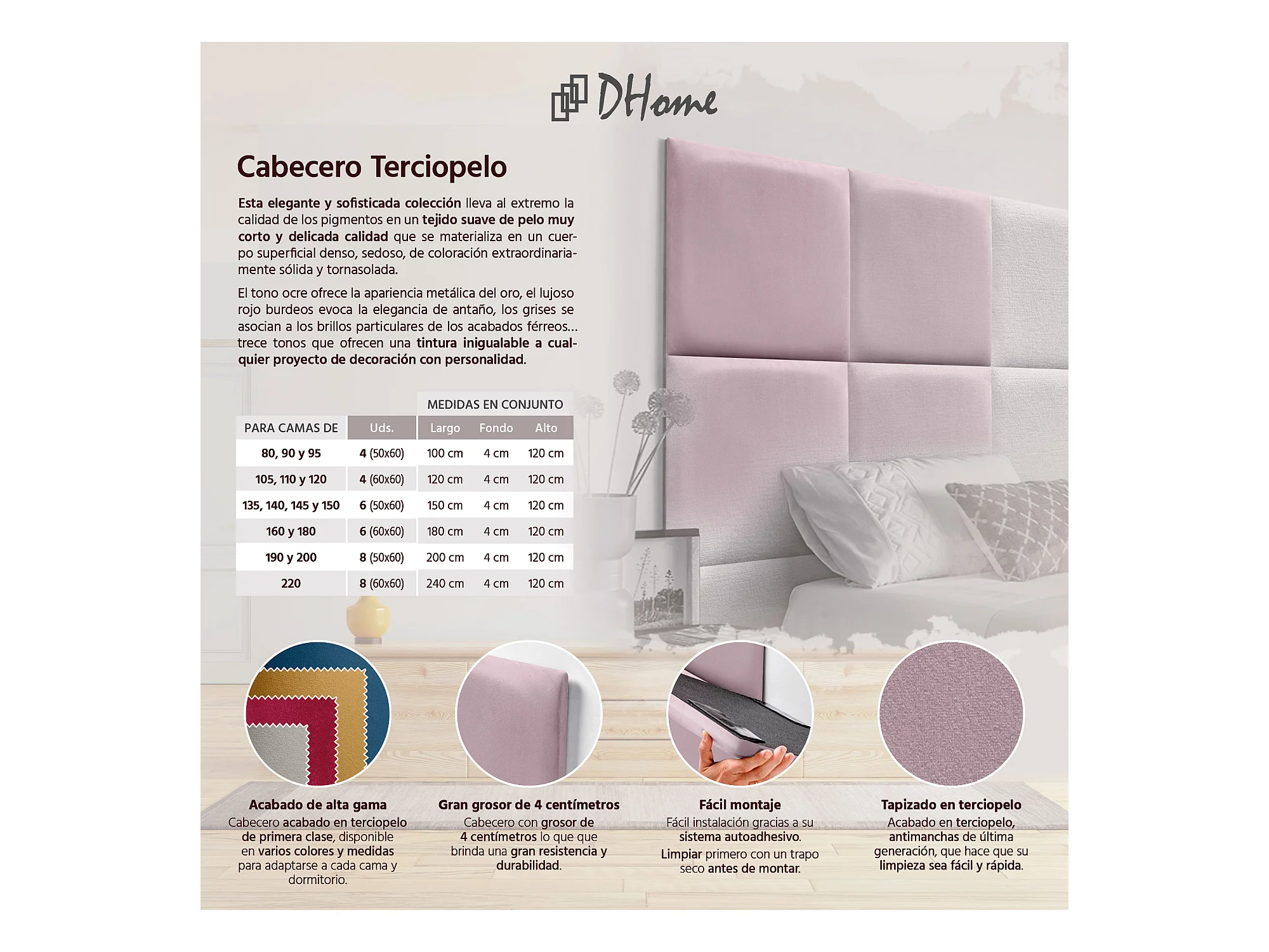DHOME Premium-Samt-gepolstertes Kopfteil, bestehend aus austauschbaren selbstklebenden Paneelen, luxuriös gepolstertes Schlafzimmer (Lachs, 105 cm)