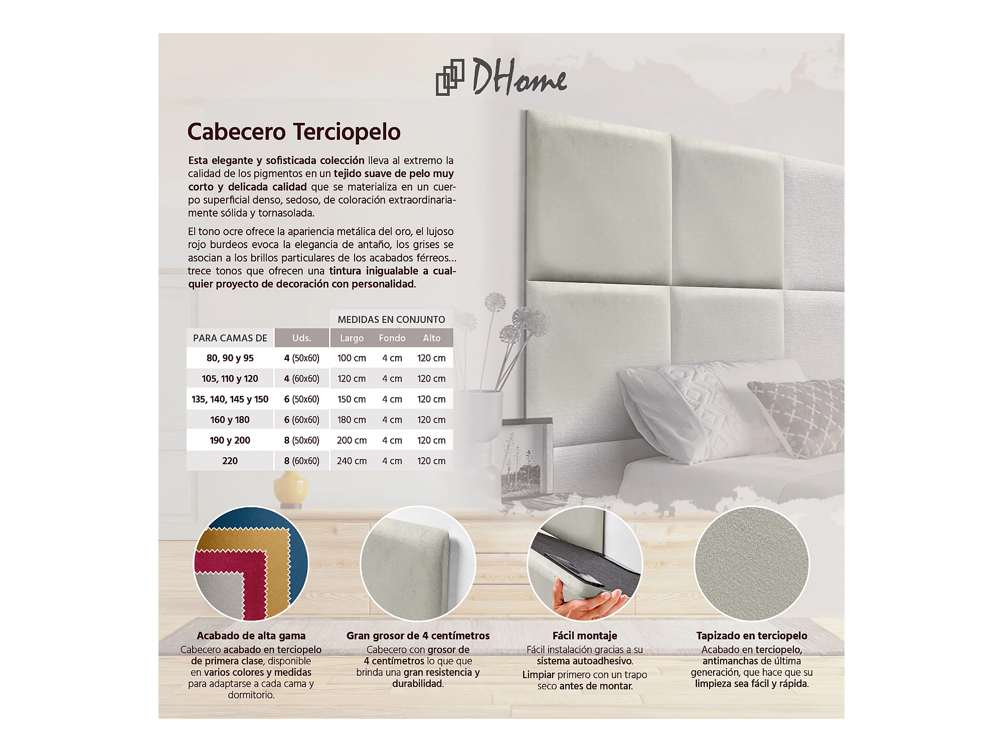 DHOME Premium-Samt-gepolstertes Kopfteil, bestehend aus austauschbaren selbstklebenden Paneelen, luxuriöses, gepolstertes Schlafzimmer (Beige, 180 cm)