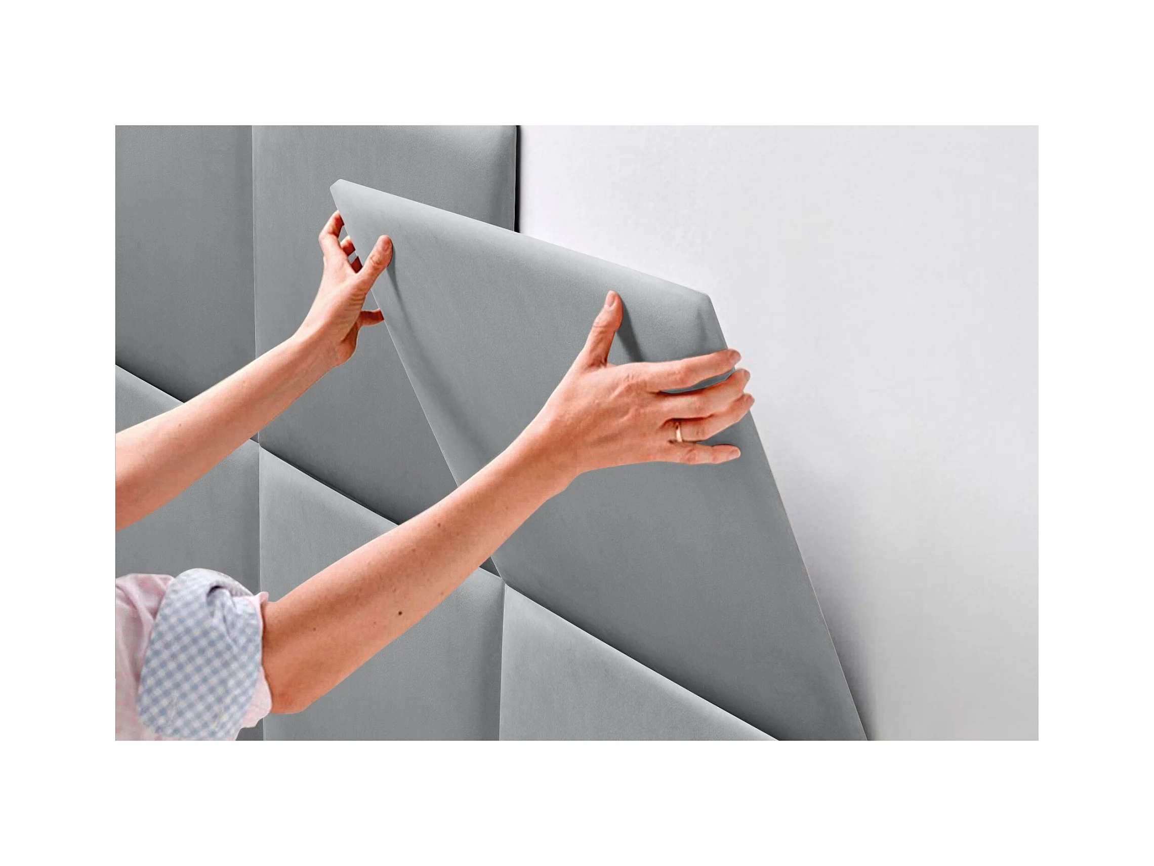 DHOME Premium-Samt-gepolstertes Kopfteil, bestehend aus austauschbaren selbstklebenden Paneelen, luxuriöses gepolstertes Schlafzimmer (Hellgrau, 145 cm)