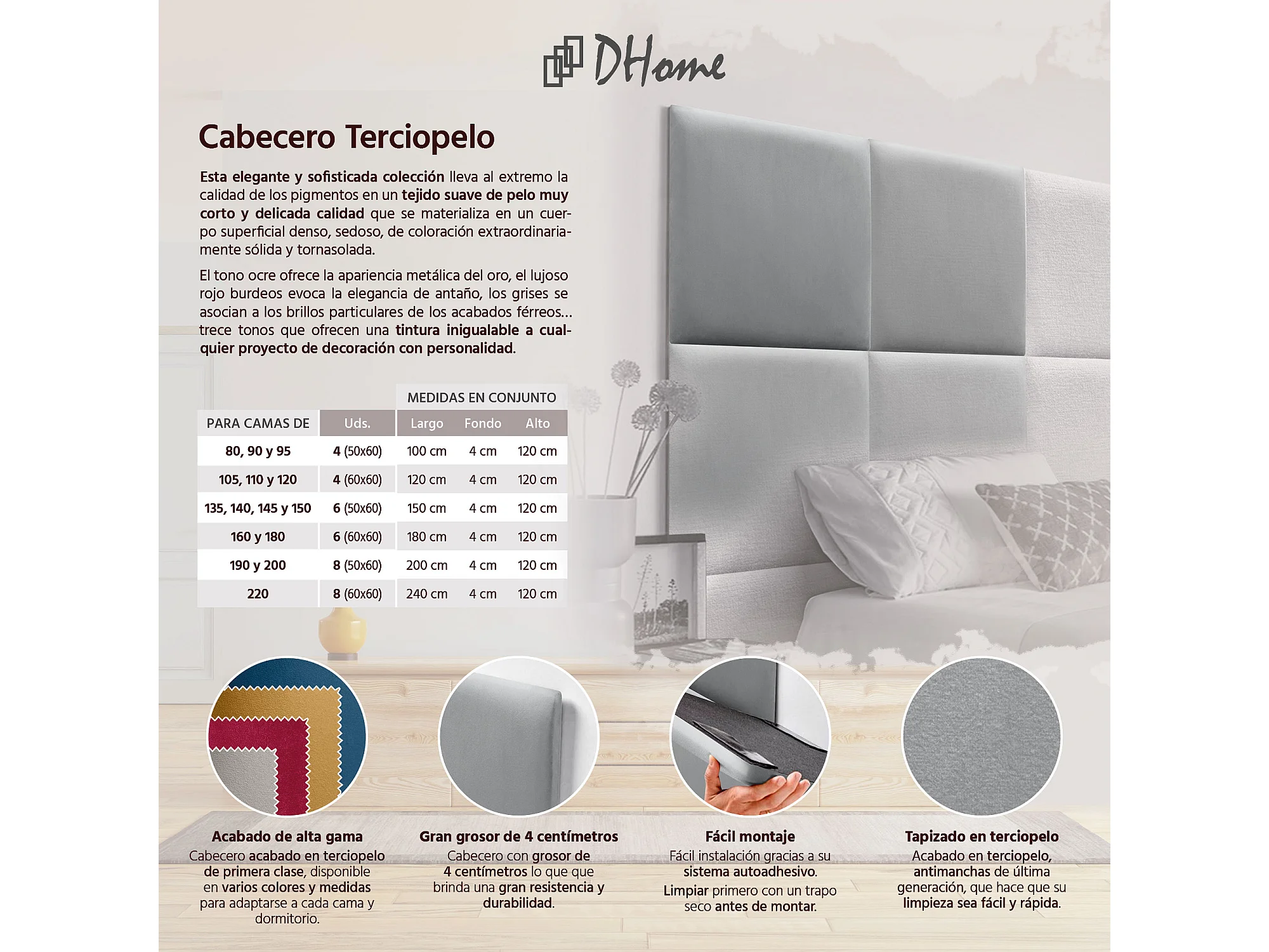 DHOME Premium-Samt-gepolstertes Kopfteil, bestehend aus austauschbaren selbstklebenden Paneelen, luxuriöses, gepolstertes Schlafzimmer (Hellgrau, 95 cm)