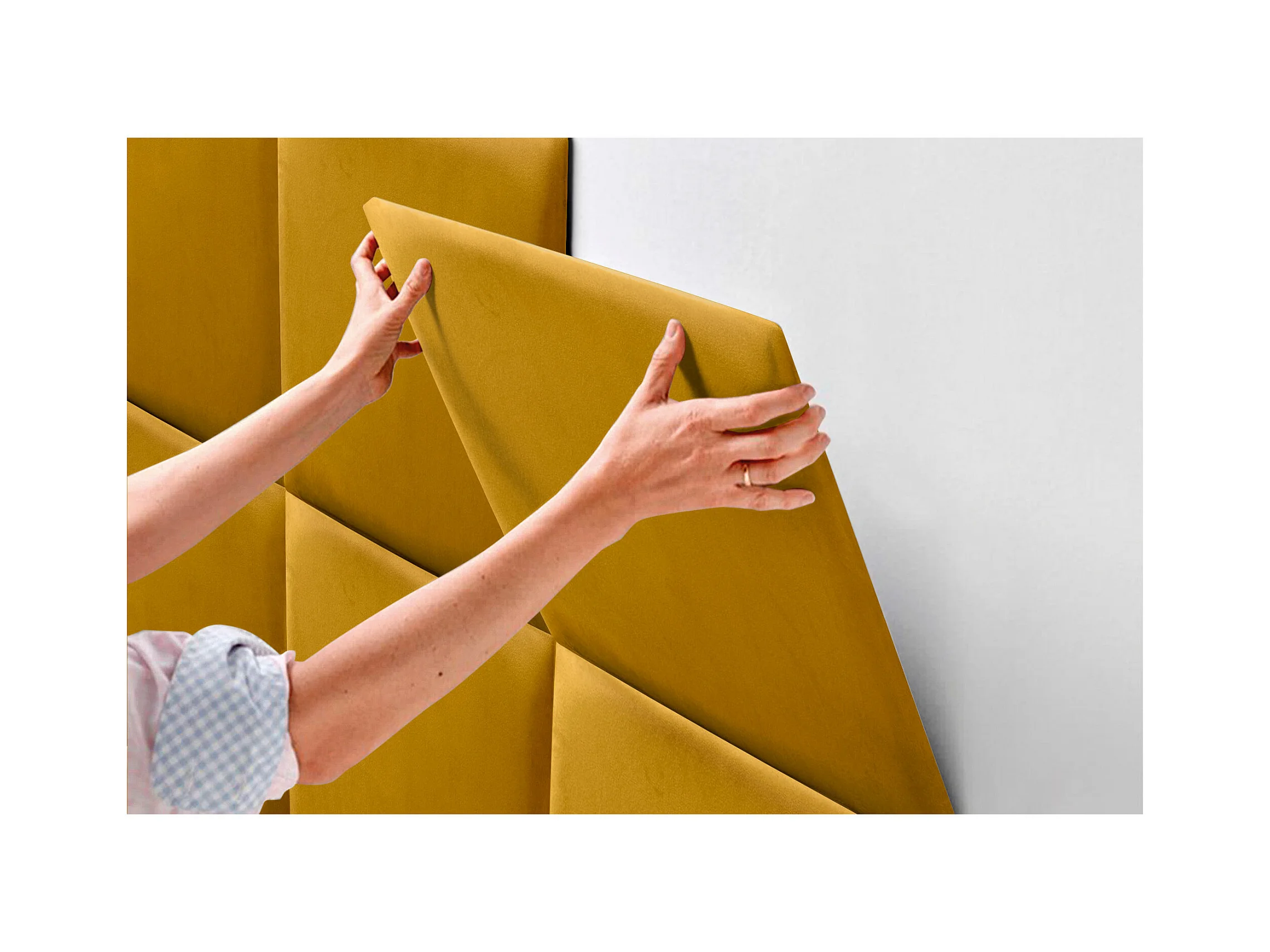 DHOME Premium-Samt-gepolstertes Kopfteil, bestehend aus austauschbaren selbstklebenden Paneelen, luxuriöses gepolstertes Schlafzimmer (Senf, 105 cm)