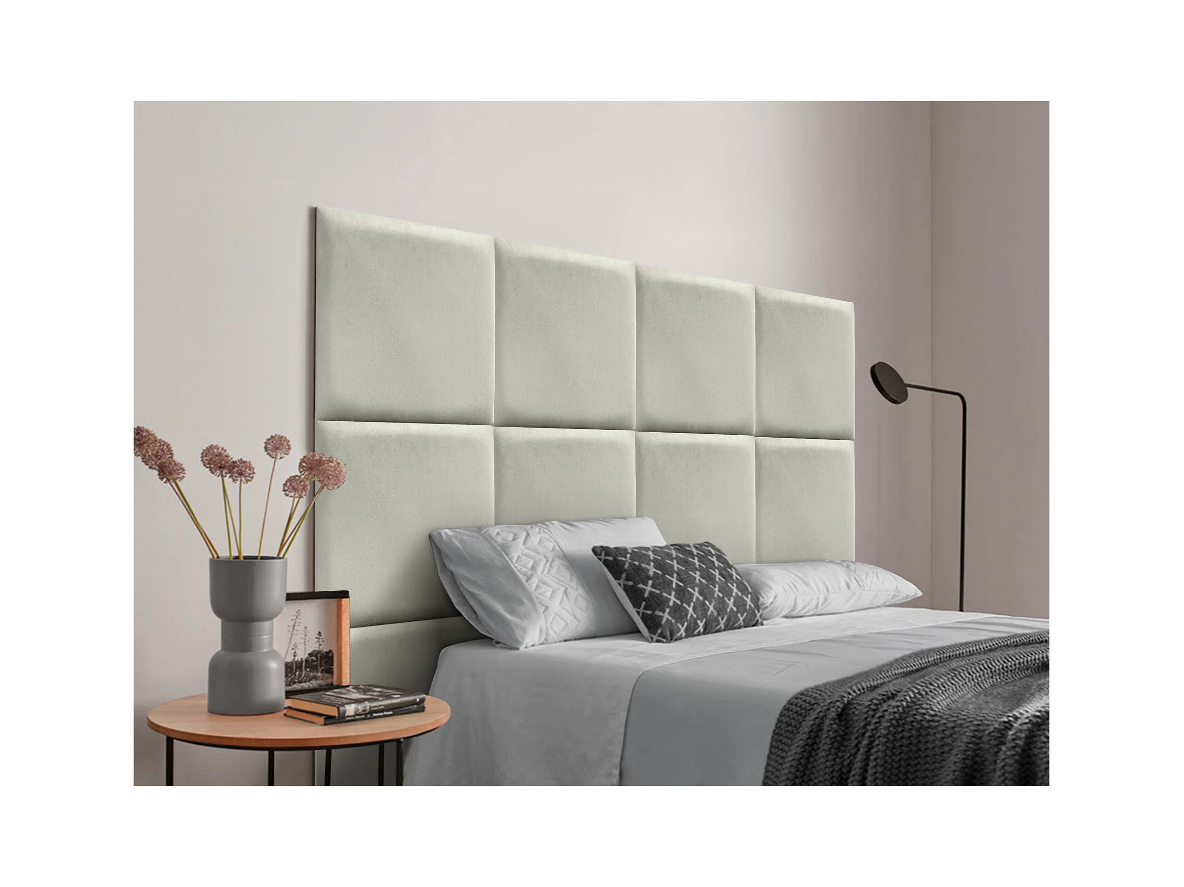 DHOME Premium-Samt-gepolstertes Kopfteil, bestehend aus austauschbaren selbstklebenden Paneelen, luxuriöses Schlafzimmer gepolstert (Beige, 95 cm)