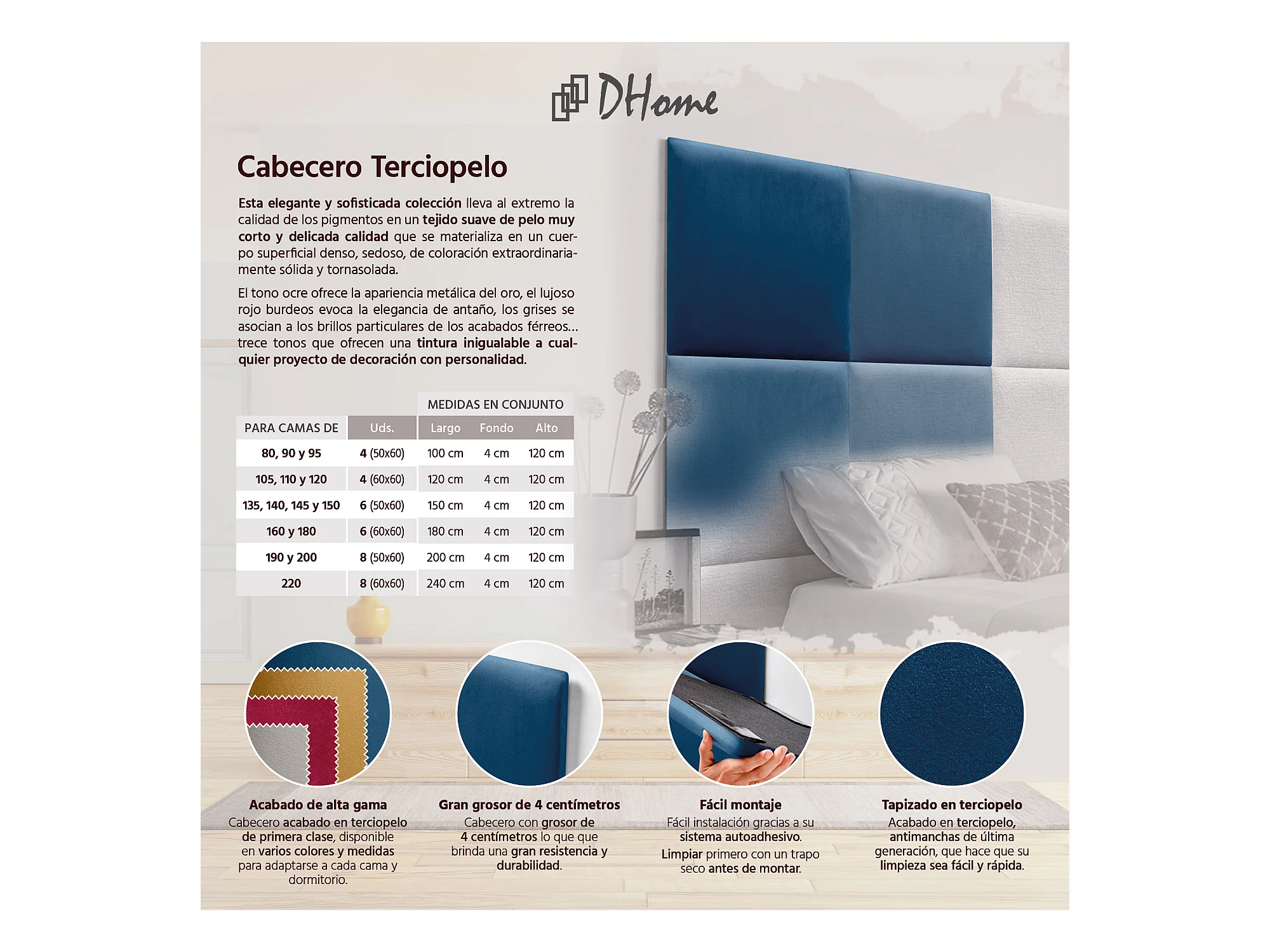 DHOME Premium-Samt-gepolstertes Kopfteil, bestehend aus austauschbaren selbstklebenden Paneelen, luxuriöses Schlafzimmer, gepolstert (blau, 190 cm)