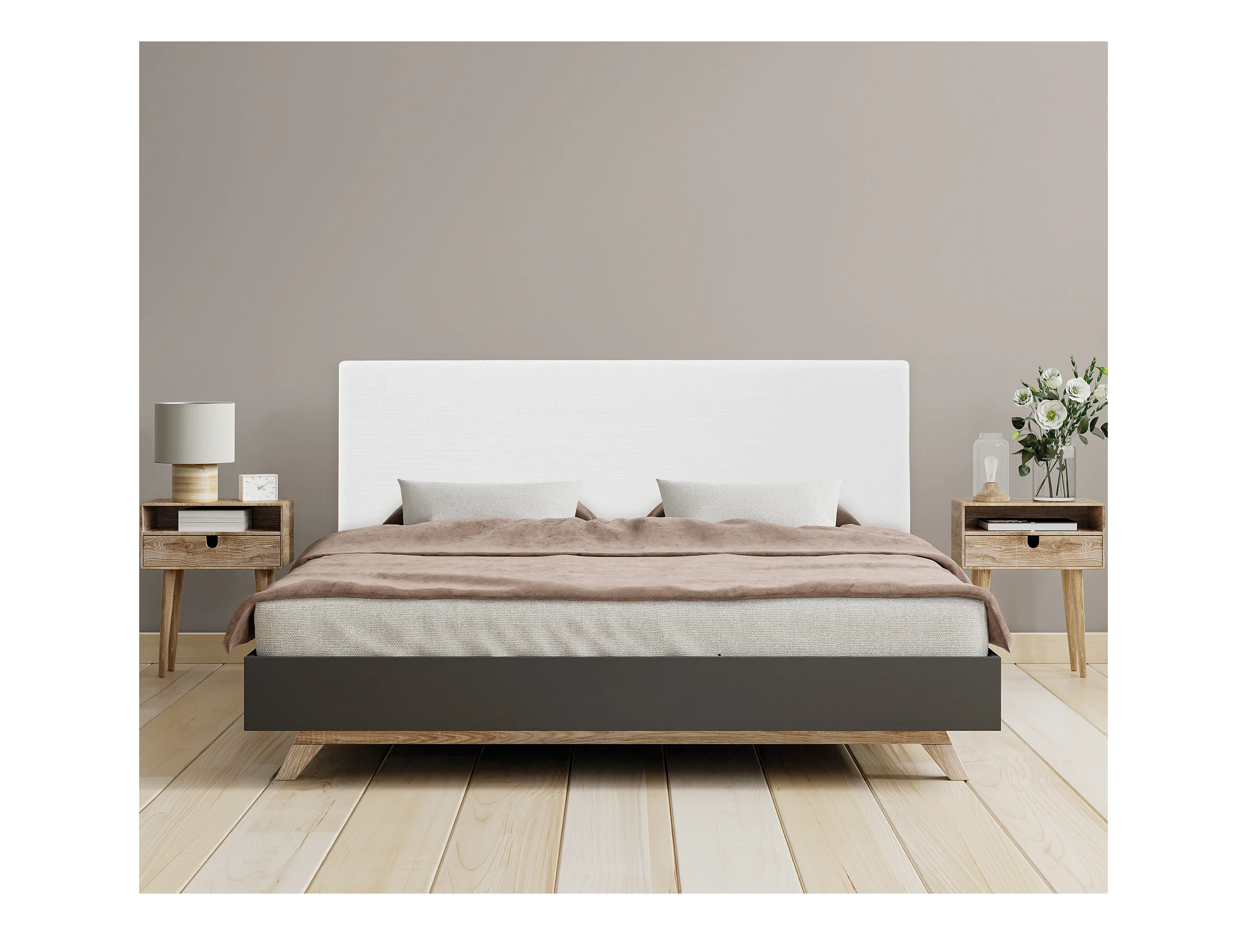 DHOME Schlichtes Kopfteil aus Naturleinen 150x105cm Mit Beinen Betten 150 - Weiß