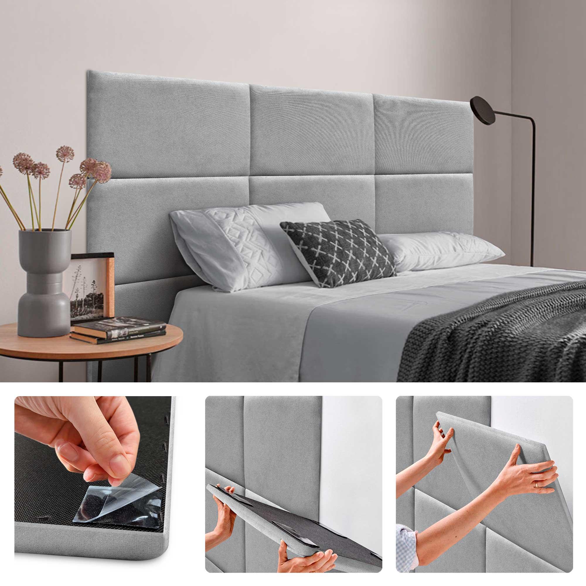 DHOME Selbstklebende gepolsterte Wandpaneele aus Acualine-Stoff, schallabsorbierend, stoßfest, Kopfteile, Dekoration (Grau, 50x40cm)