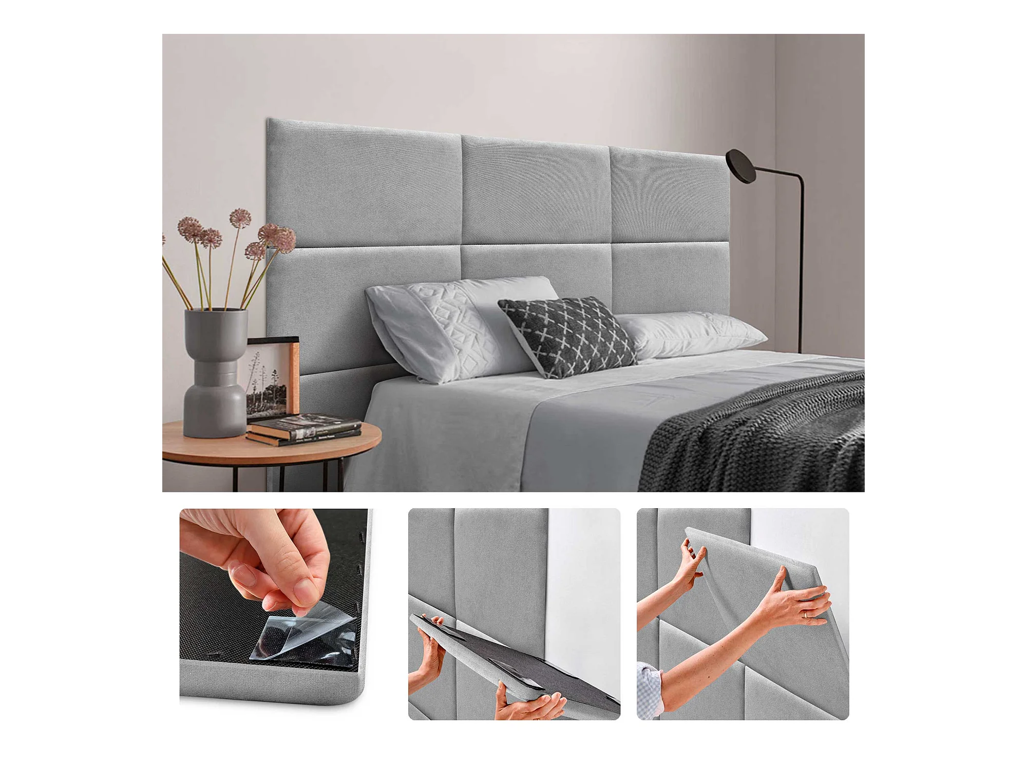 DHOME Selbstklebende gepolsterte Wandpaneele aus Acualine-Stoff, schallabsorbierend, stoßfest, Kopfteile, Dekoration (Grau, 60x50cm)