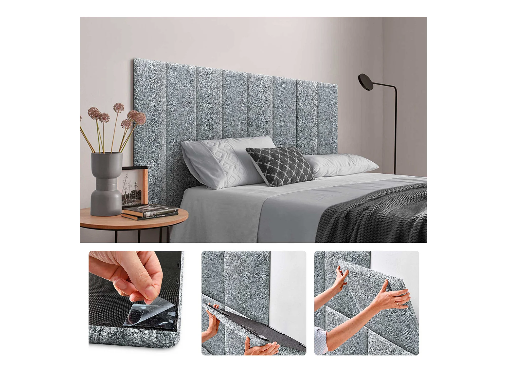DHOME Selbstklebende gepolsterte Wandpaneele aus Acualine-Stoff, schallabsorbierend, stoßfest, Kopfteile, Dekoration (Perlgrau, 60x20cm)