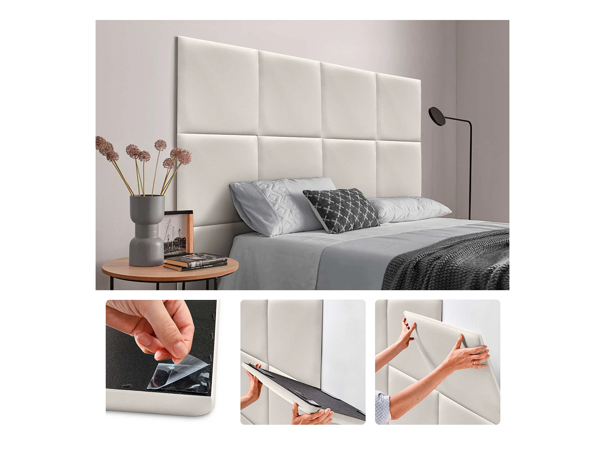 DHOME Selbstklebende Wandpaneele aus Kunstleder, schallabsorbierender Schutz, Stoßschutz, Kopfteile, Dekoration (CremeWeiß, 50 x 50 cm)